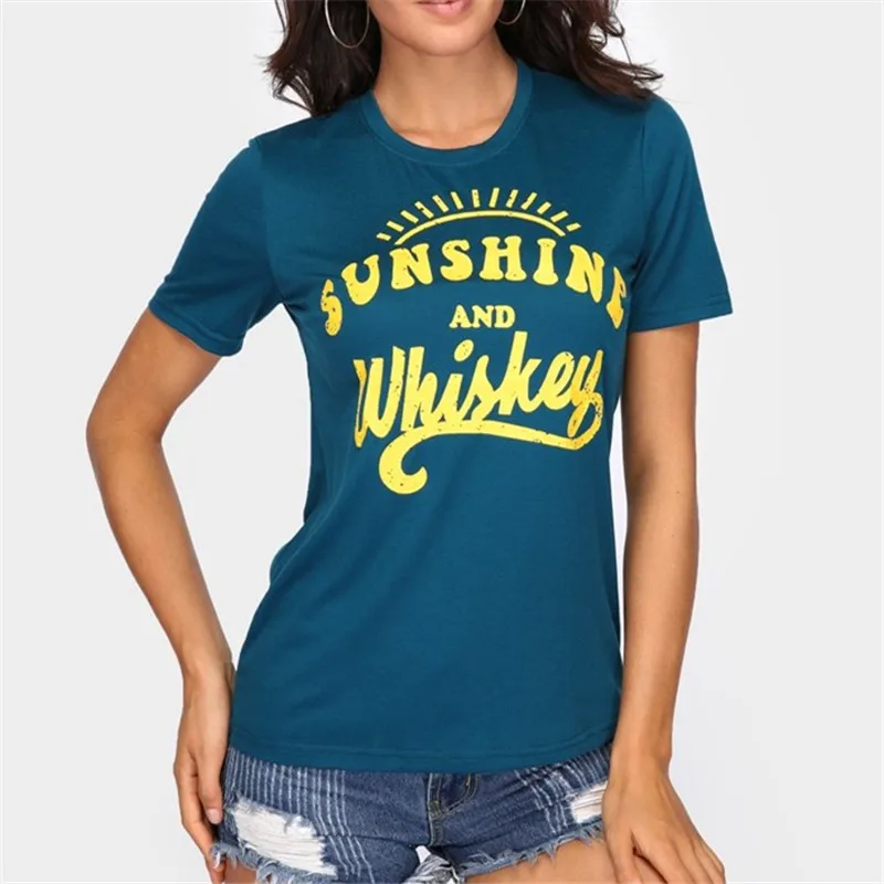 Новые Женские Футболки С Короткими Рукавами Темно-Зеленые Топы С Принтом Футболка С Круглым Вырезом 2019 Летние Повседневные Женские Топы