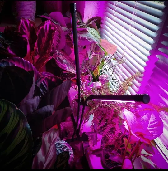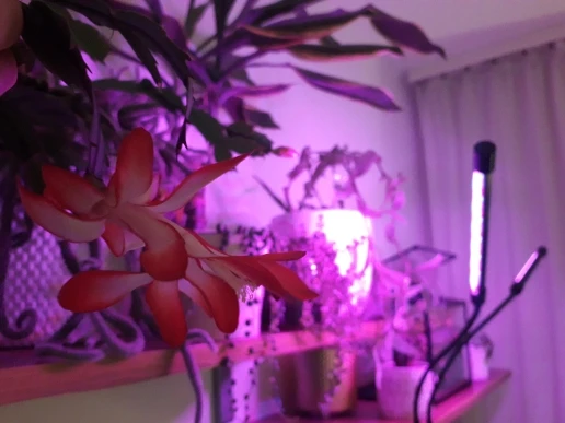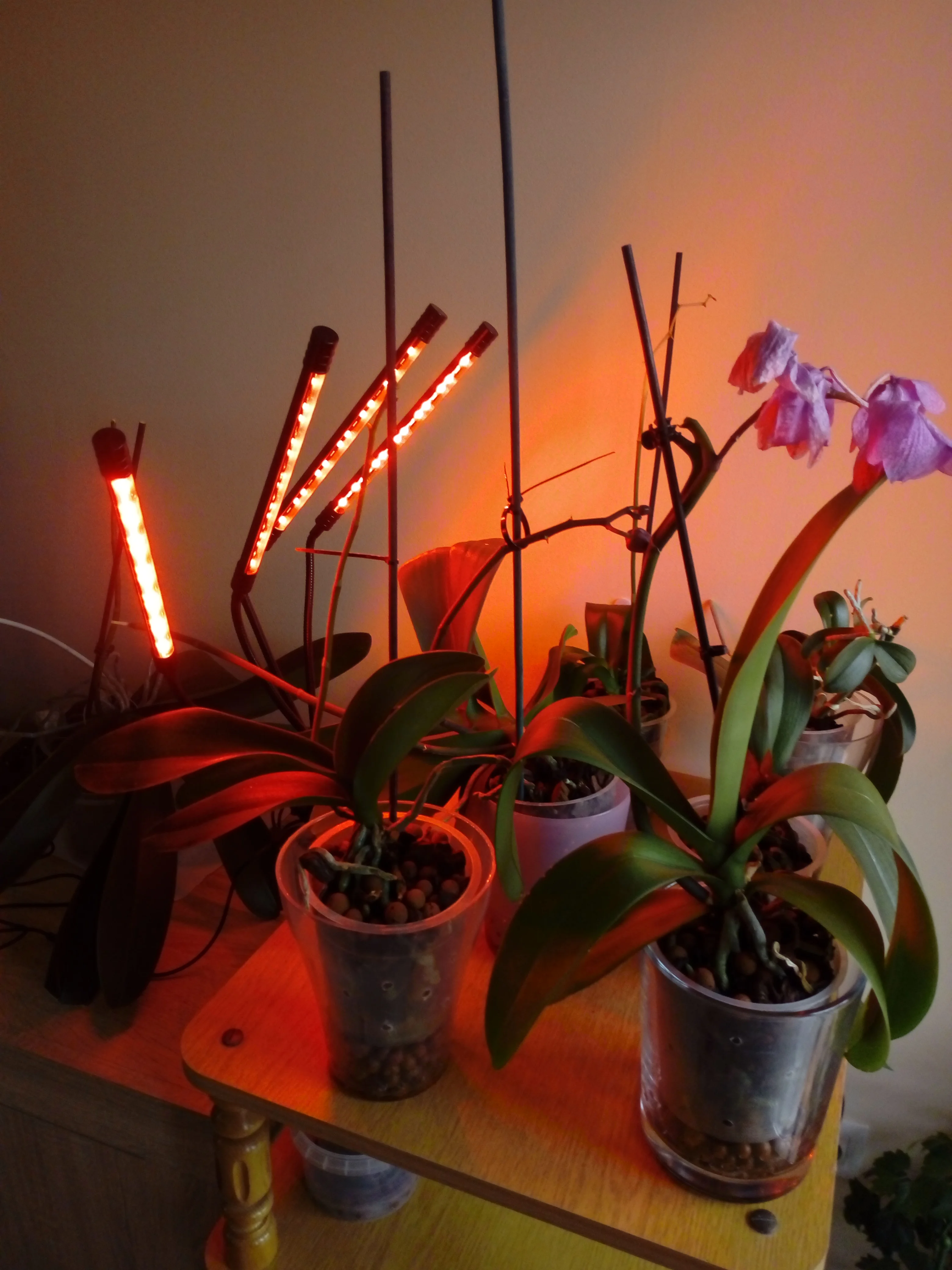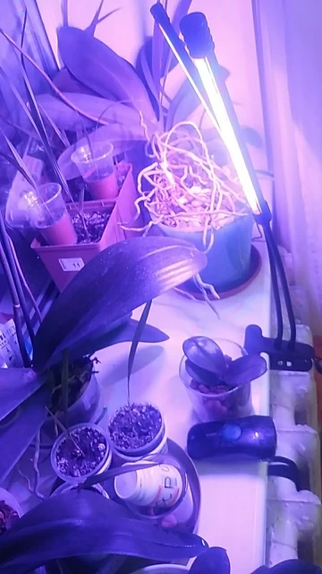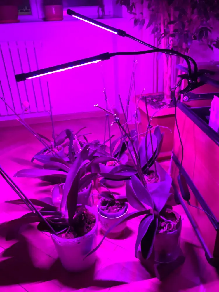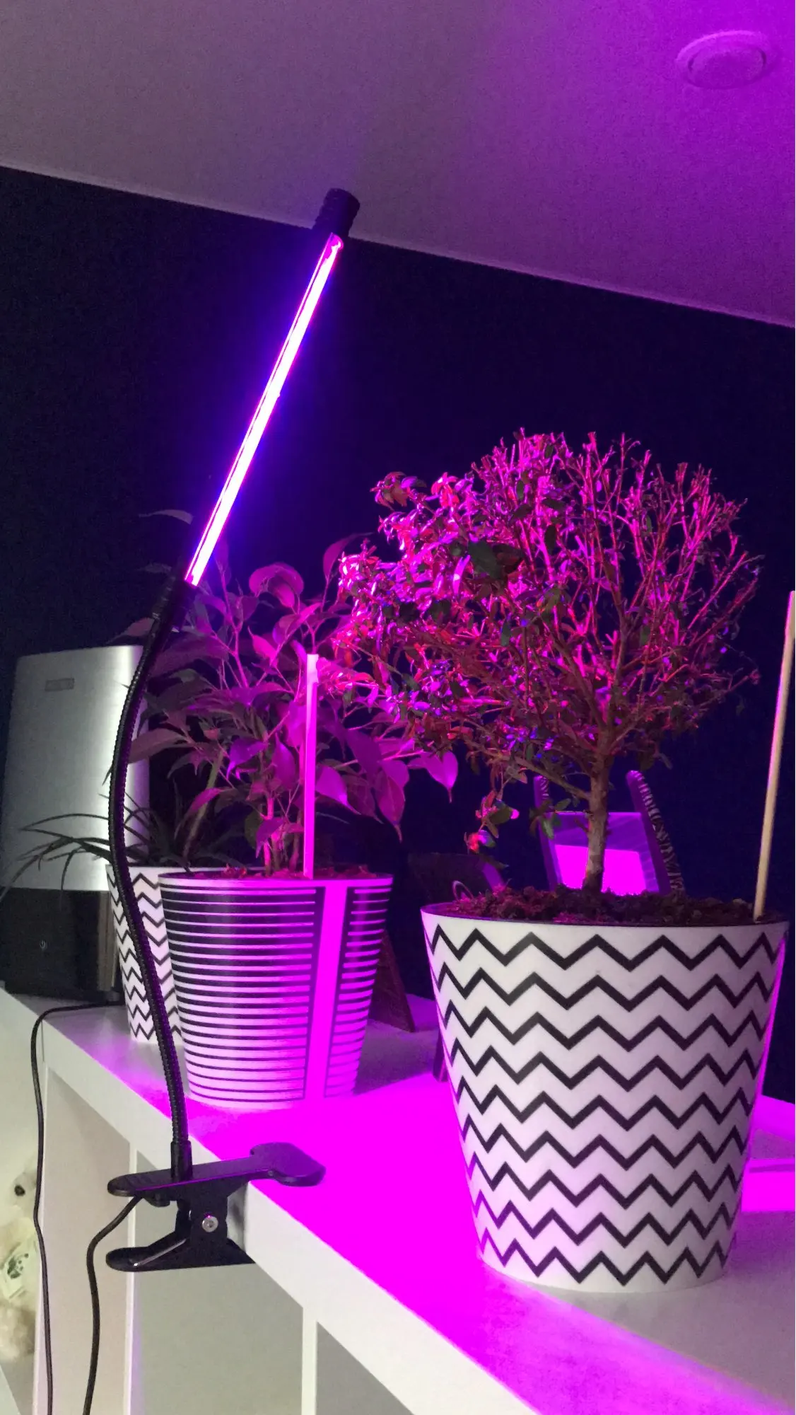 Покупала лампу с четырьмя "щупальцами". Лампа имеет несколько режимов интенсивности свечения, может светить только красным, только синим или двумя сразу, то есть розовым. Есть таймер на 4, 8 и 12 часов, все режимы работают. Упакован светильник в картонную коробку, коробка пришла помятая, лампа не пострадала. Сами элементы лампы были завернуты в пакетики. Зажим крепкий, с поролоновыми краями, проволочных стержни гнутся и фиксируются в нужном положении отлично! А самое главное - растения отвернулись от окна к лампам!! Ставлю таймер на 8 часов подсветки с 11-ти до 19-ти. Зарядного блока в комплекте нет.