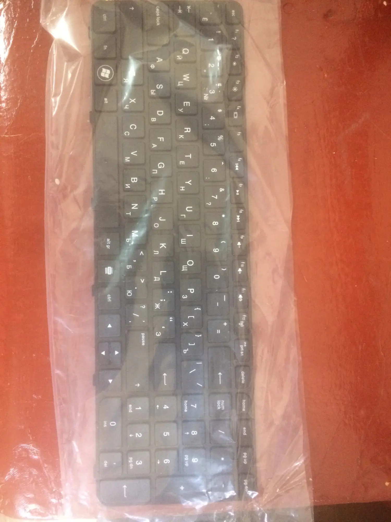Низкое качество, нет светодиодов для кнопок, таких как бесшумный или wifi. Размер клавиатуры не такой, как у оригинала. По крайней мере, работает...