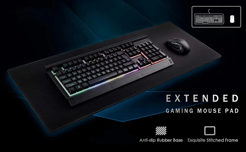 Коврик для мыши Rakoon, большой размер, противоскользящий, из натурального каучука, для ПК, игровой коврик для мыши, Настольный коврик с фиксирующим краем для CS GO, LOL, DOTA2