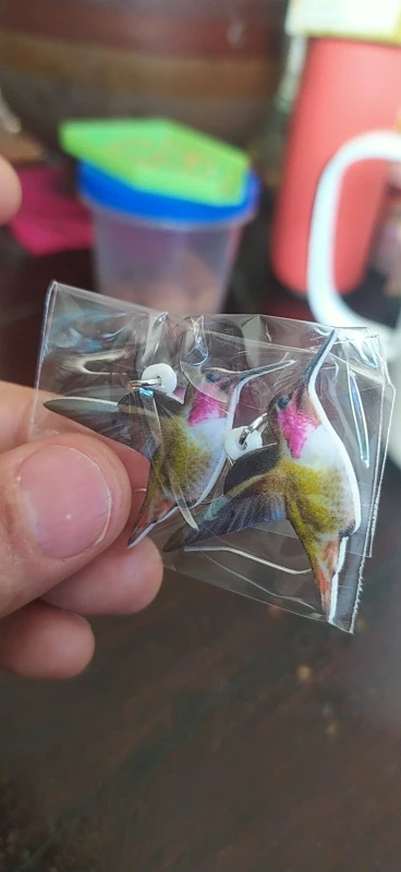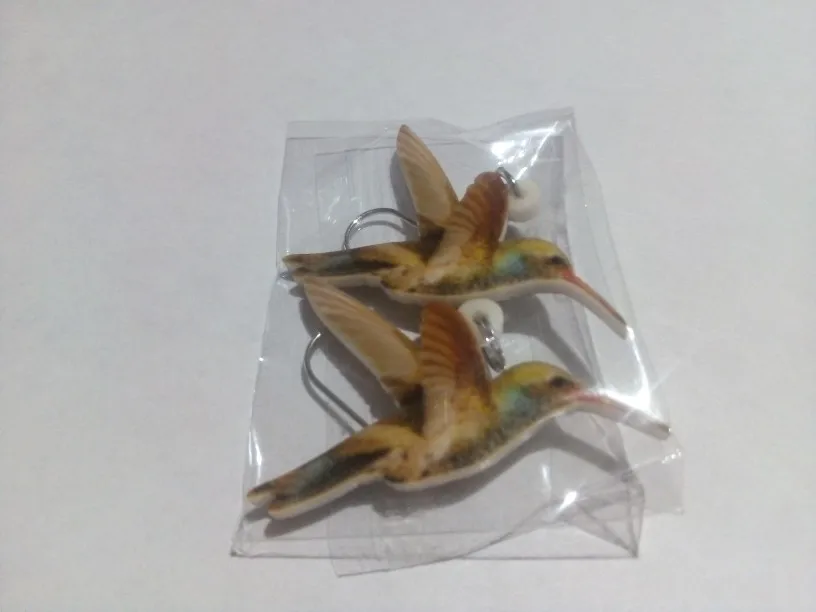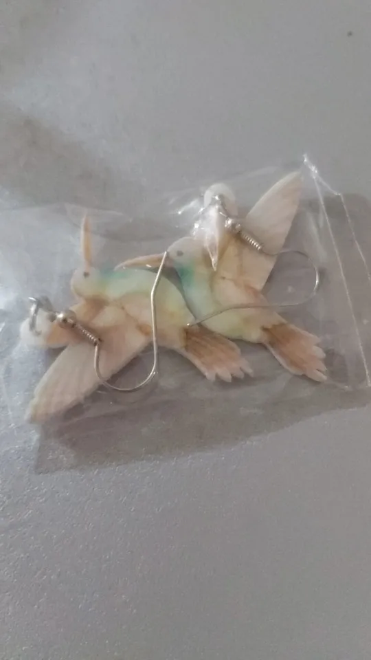 Beautiful humming bird earrings like the real bird. I love them. I will order more. I recommend and i am very happy with these pretty earrings. Thank you