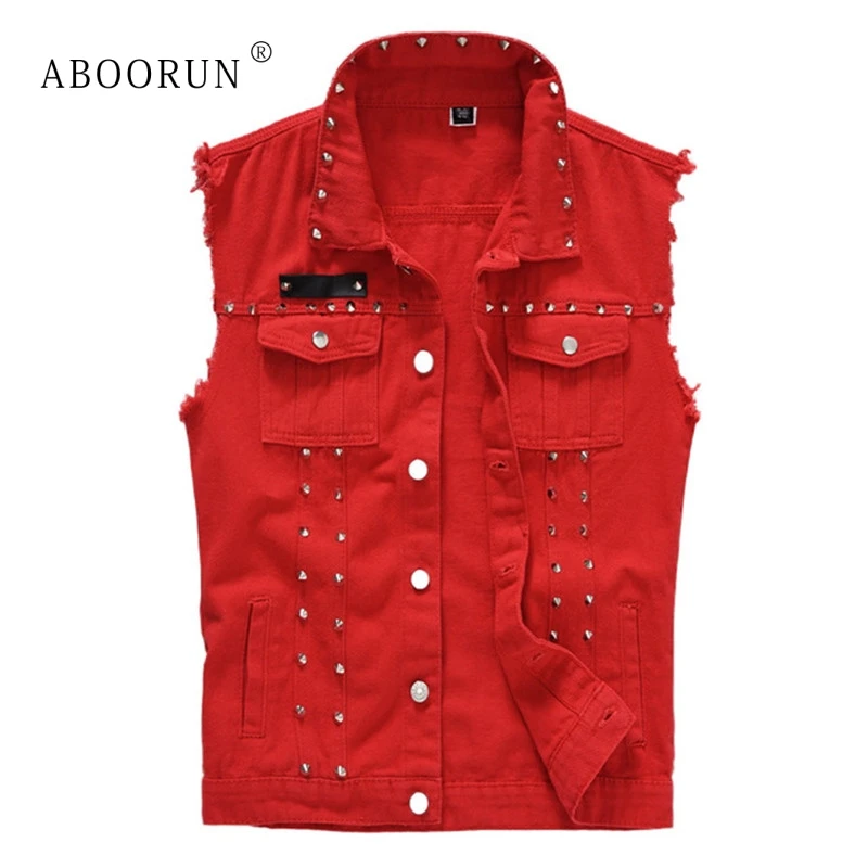 ABOORUN панк Для мужчин, джинсовый жилет с заклепками; Цвет Черный; Сезон Slim fit жилет размера плюс 5XL куртка без рукавов по доступной цене, повседневная одежда для мужчин YC1346