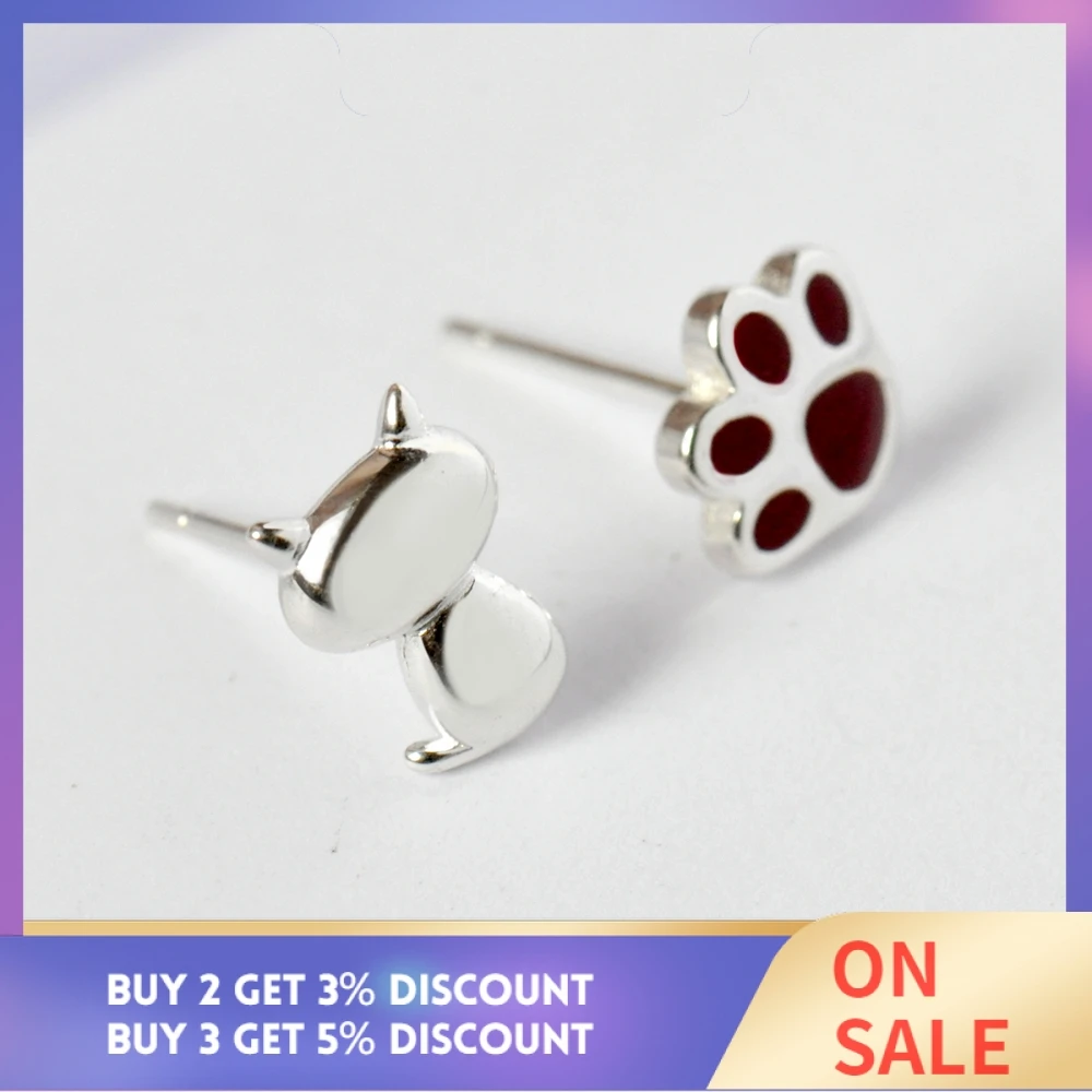 Thaya 925 серебряные ювелирные изделия Красный милый кот лапа шпилька Корейский, асимметричный серьги женские сережки Oorbellen Boucle D'oreille для женщин