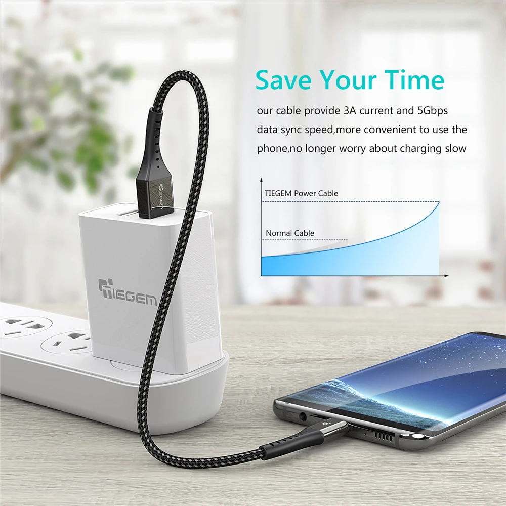 Кабель TIEGEM usb-c, для Samsung S9, S8 Plus, Note 8, 9, Huawei P9, P10, P20, 3 А