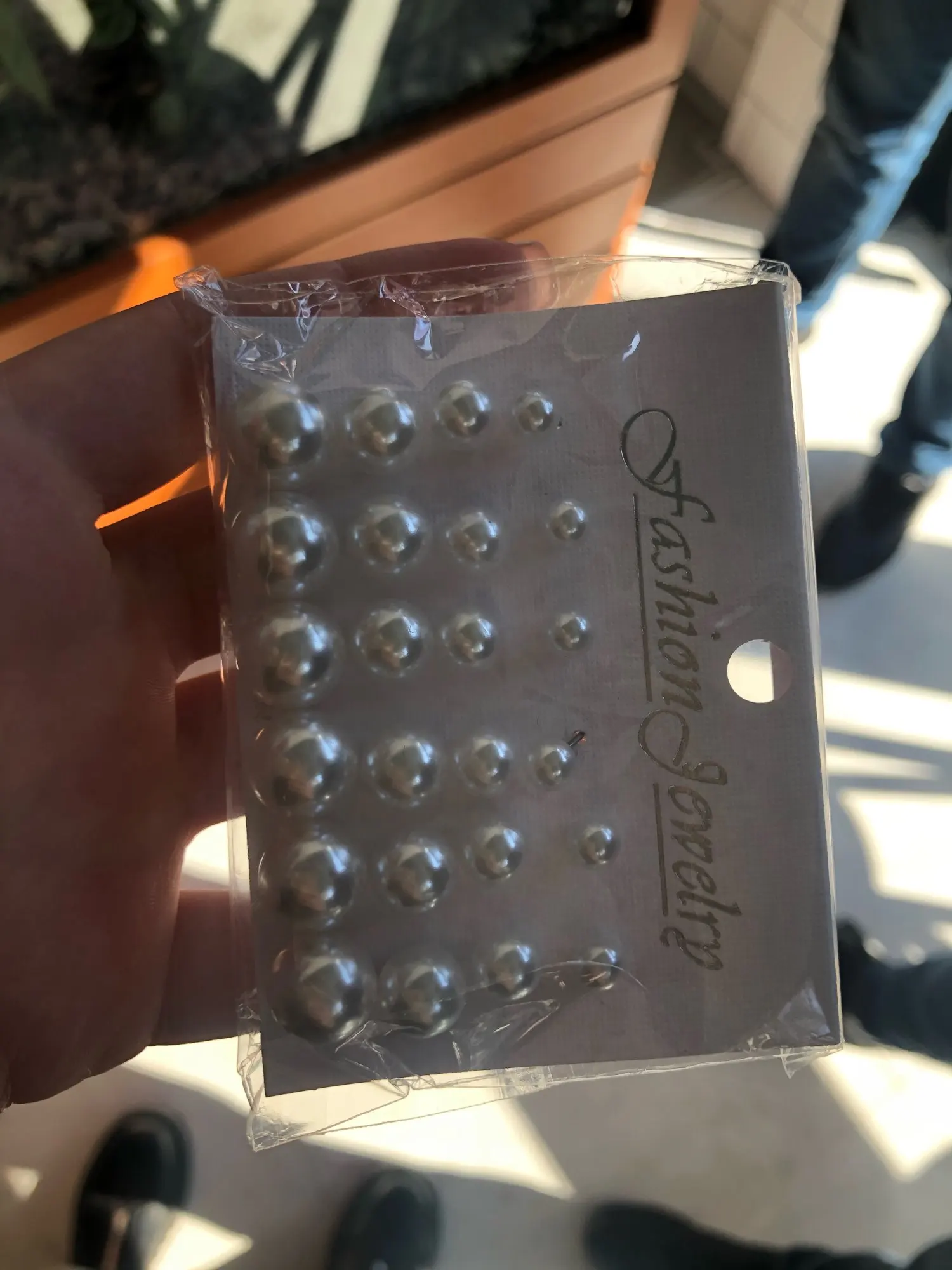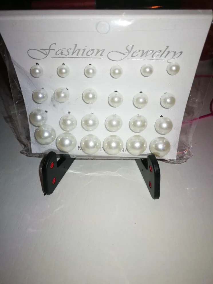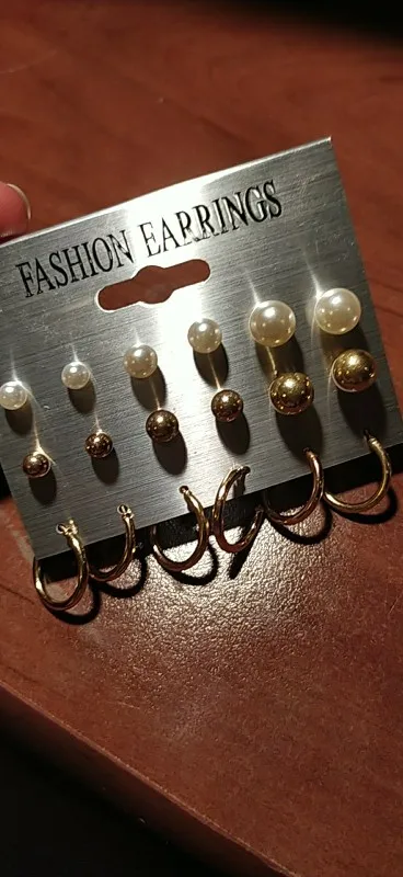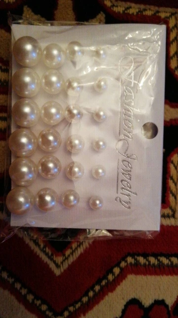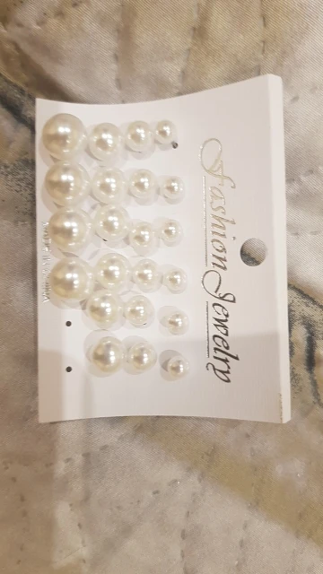Обычный набор сережек-гвоздиков. Заказывала такие несколько раз,но у другого продавца. В носкее нормальные,со временем могут облезть и вместо "жемчуга" будут просто белые шарики.