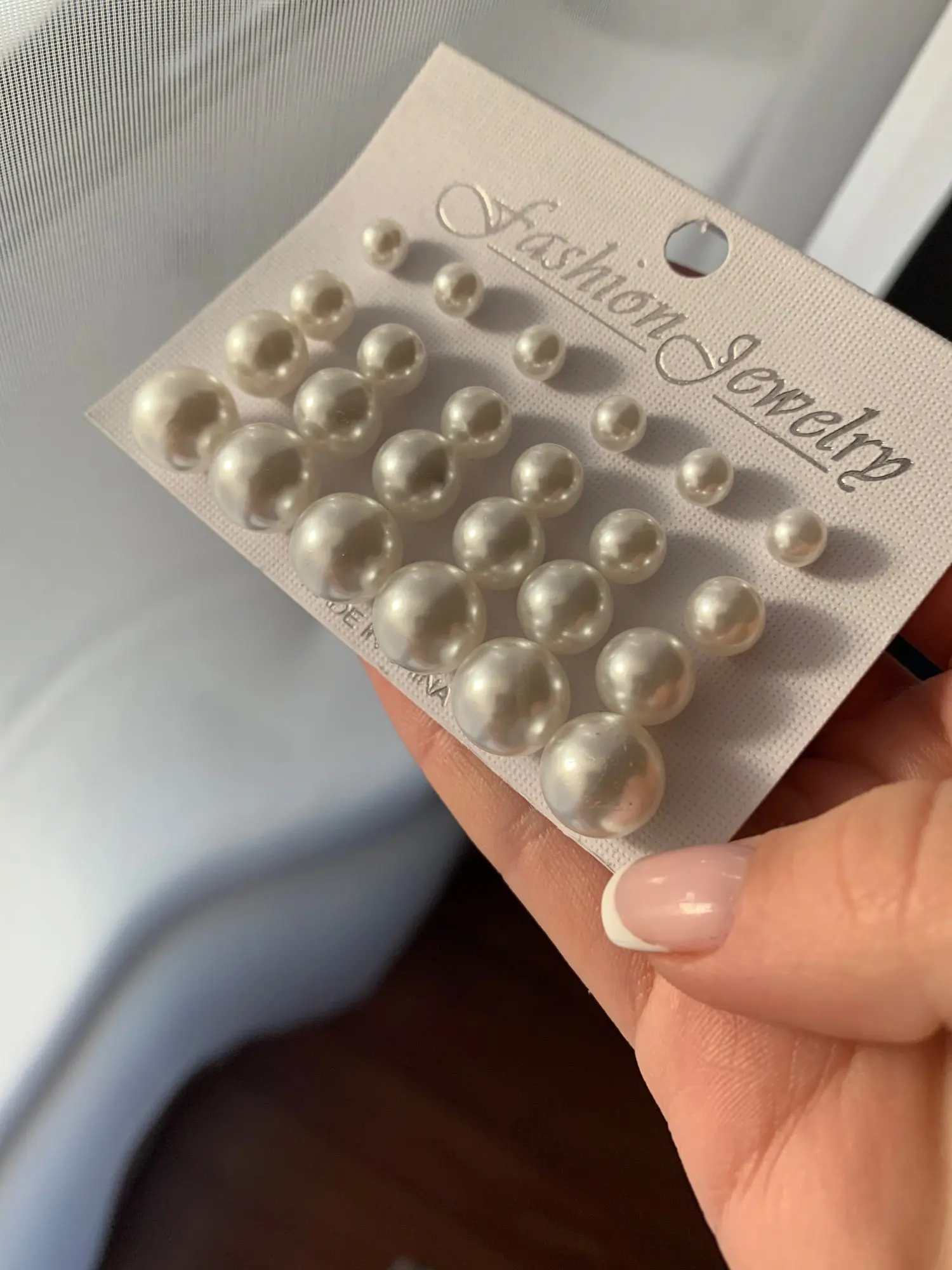 Украшения Комплект сережек для женщин из белого искусственного жемчуга, 12 пар, шар с ушками, комплект серег, украшения, бижутерия, бижутерия