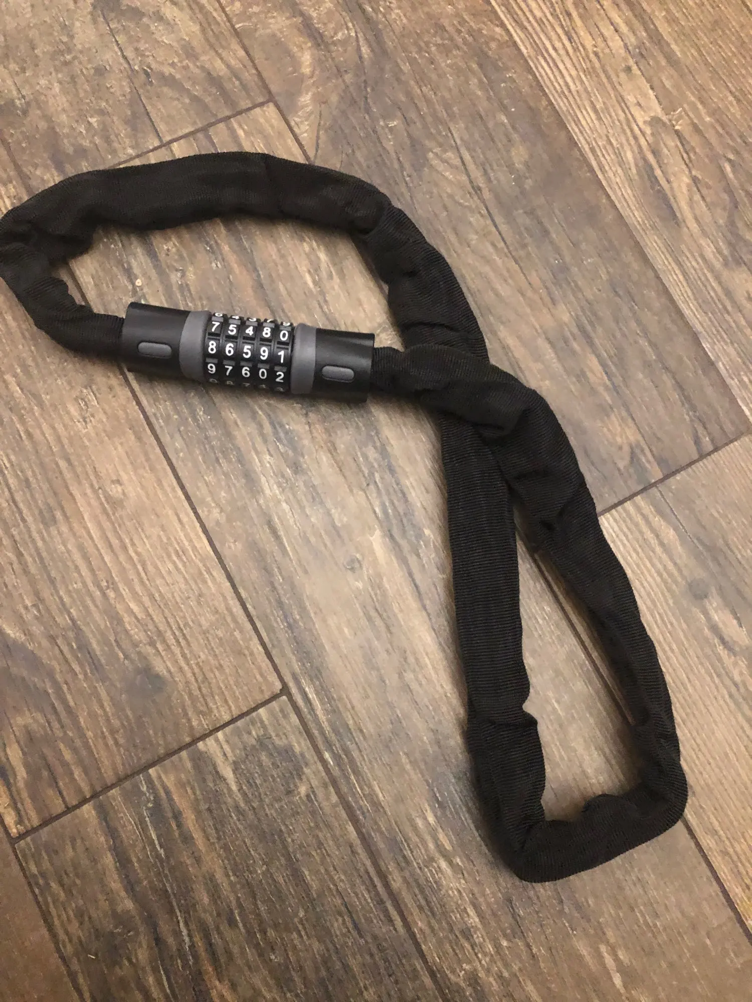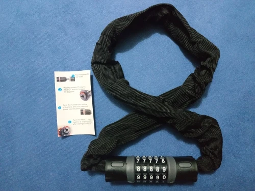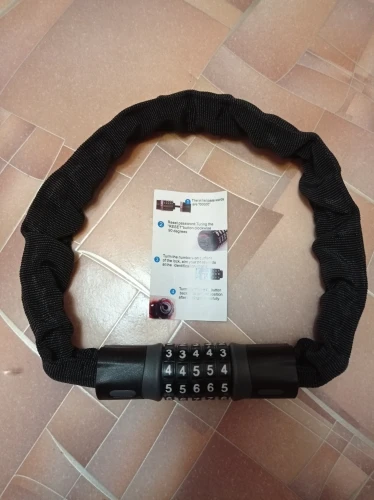 Товар отличный. Замок металлический, внутри цепь. Очень прочно все сделано. Заказываю вторую цепь для велосипеда , первая была с ключиками и длиннее. Из минусов: цепь тяжелая. Доставка из РФ очень быстрая. Курьером по указанному адресу принесли