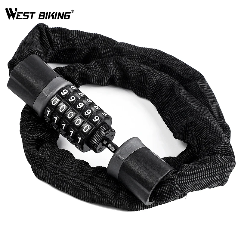 WEST BIKING, длинный защитный цепной замок для велосипеда, Противоугонный стальной кодовый замок для мотоцикла, аксессуары для электрического велосипеда
