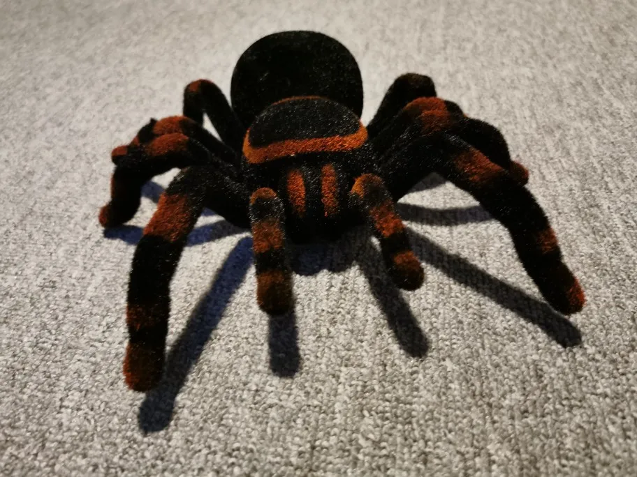 хороший паук, шустрый. немного сыпятся ворсинки от покрытия по началу. ребенок доволен. доставка очень долгая, шло 3 месяца.