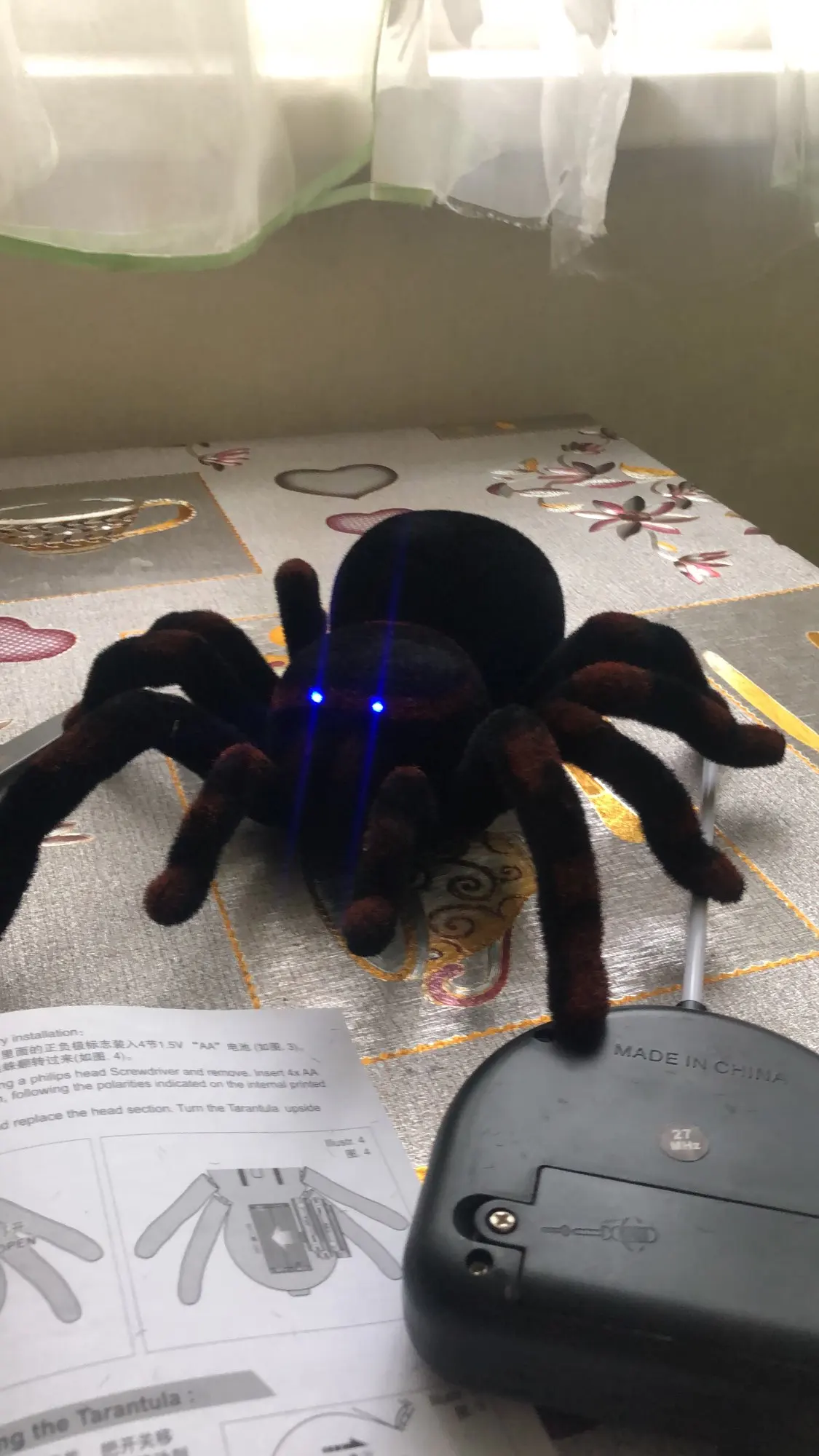 Это прибыло сегодня, но коробка была разбита. Паук был в порядке, и пульт дистанционного управления хорошо работает. Упаковка не очень хорошая. Забавно работать, и мои собаки сошлись с ума, когда паук бегает по полу! Это будет забавно для Хэллоуина!