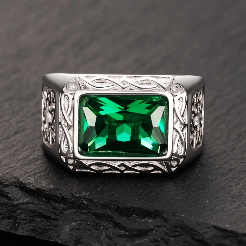 Обручальные кольца Valily с зеленым кубическим цирконием, винтажные кольца из нержавеющей стали, ювелирные изделия для женщин и мужчин, стиль US Size7-13