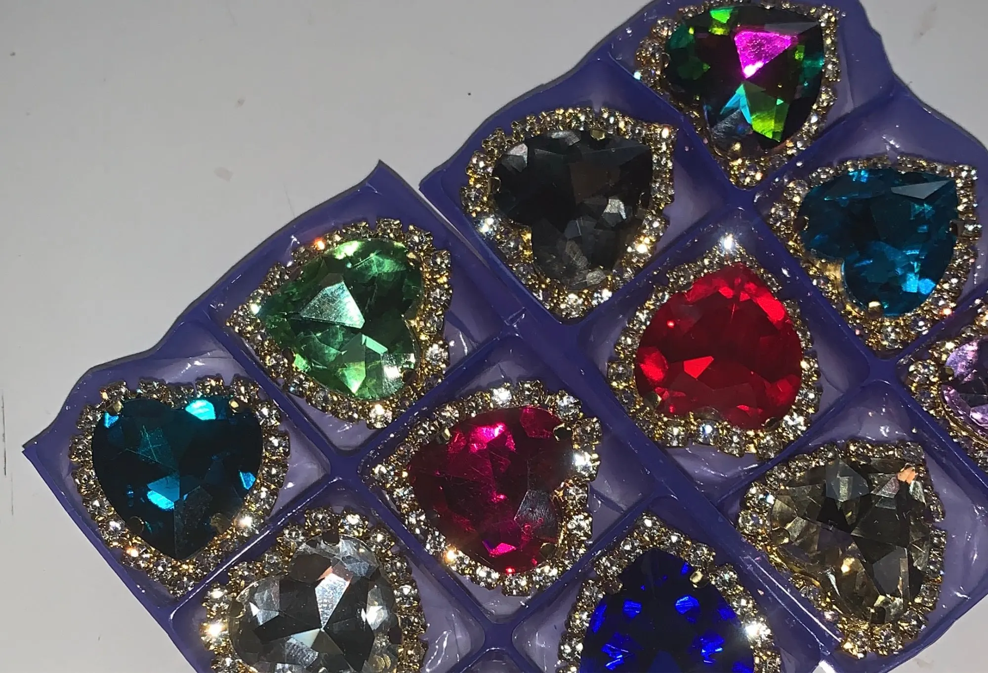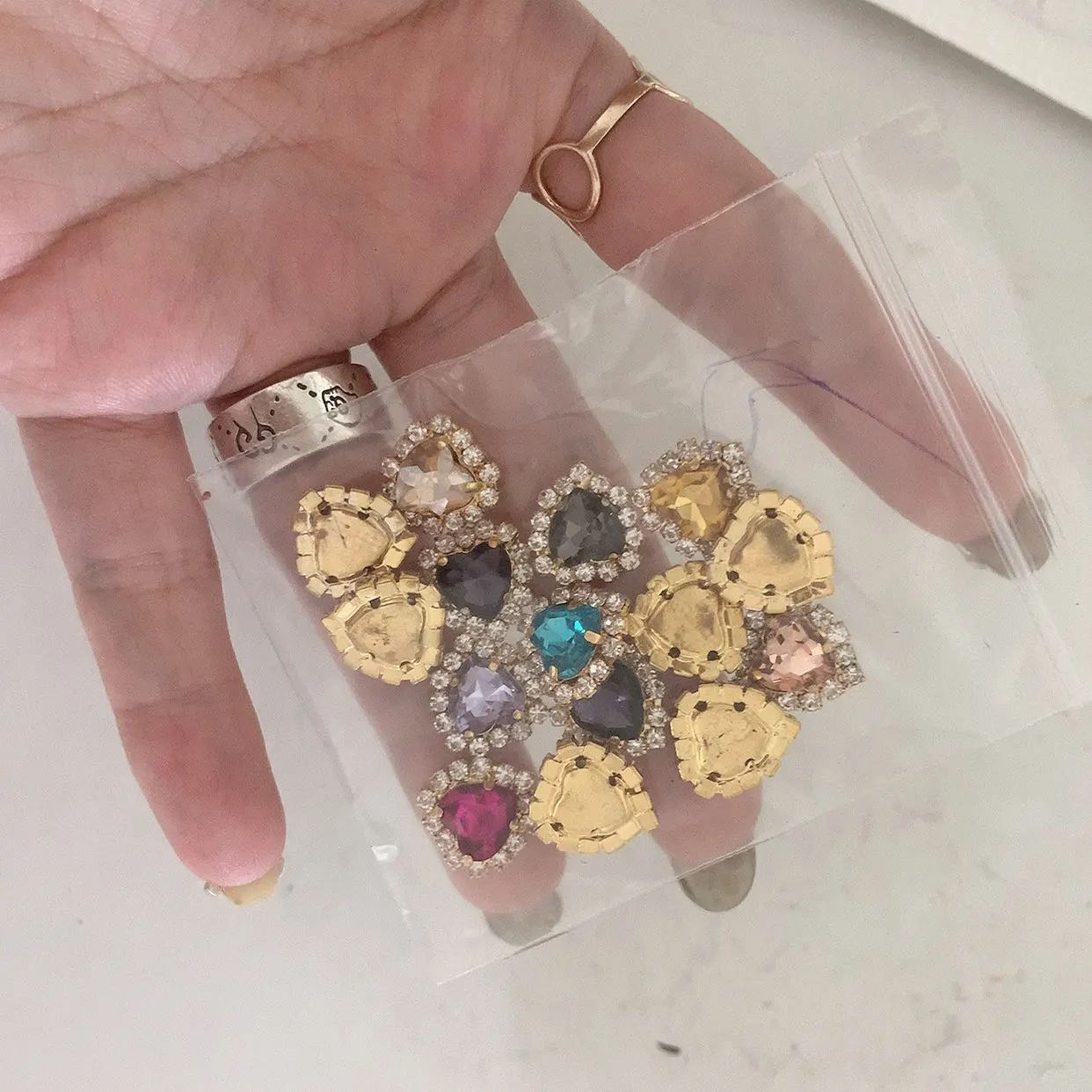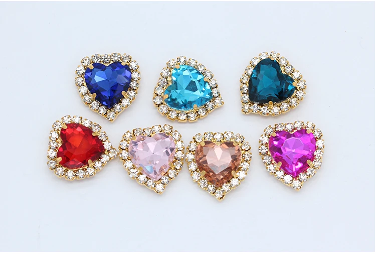 8101218 цветов в форме сердца хрустальные стразы для пришивания с плоской задней стороны, цепочка, Золотая оправа, для изготовления одежды, ювелирных изделий