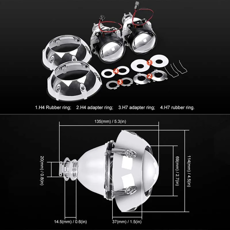Биксеноновые Мини-объективы для проектора RACBOX, 2 шт., 2,5 дюйма,...
