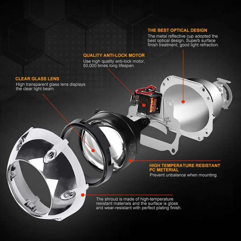 Биксеноновые линзы проектора, 2,5 дюйма, в черном и серебристом кор...