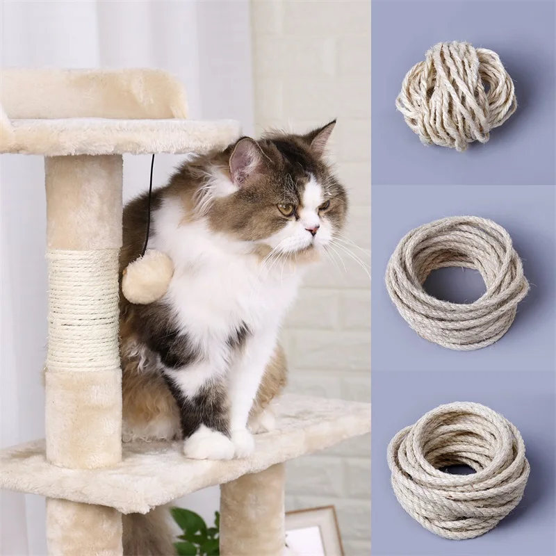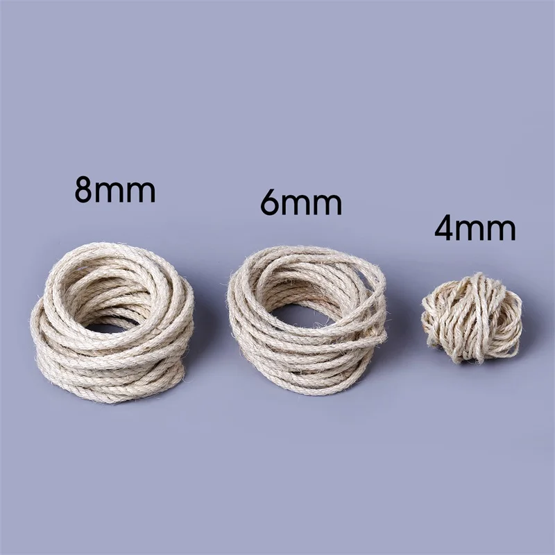 Натуральная сизалевая веревка прочные 4/6/8 мм DIY Изготовление ножек для настольного стула, Когтеточка для кошек, игрушка, материал для заточки кошек