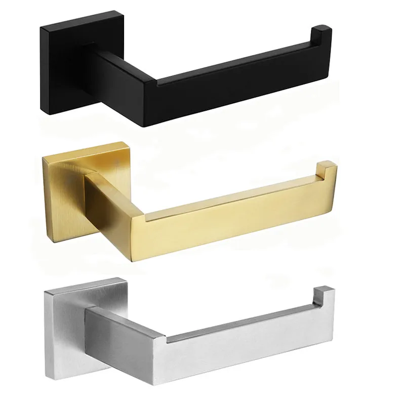 Настенные аксессуары для ванной комнаты, Квадратный держатель для туалетной бумаги из нержавеющей стали, зеркало, матовое золото, черный, матовый