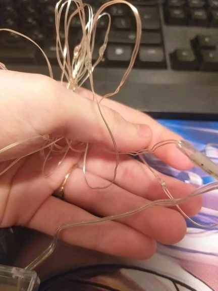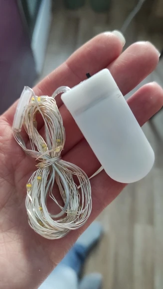 Товар точно соответствует описанию. Тонкая проволочная нить, а на ней капельки стеклянные, которые светятся. Подключила к зарядке от телефона и в сеть. Один режим, просто светится. Лампочки расположены через каждые 10 см. Товар дошел до Кургана за месяц, отслеживаться на протяжении всего пути. Продавца и товар рекомендую!!!