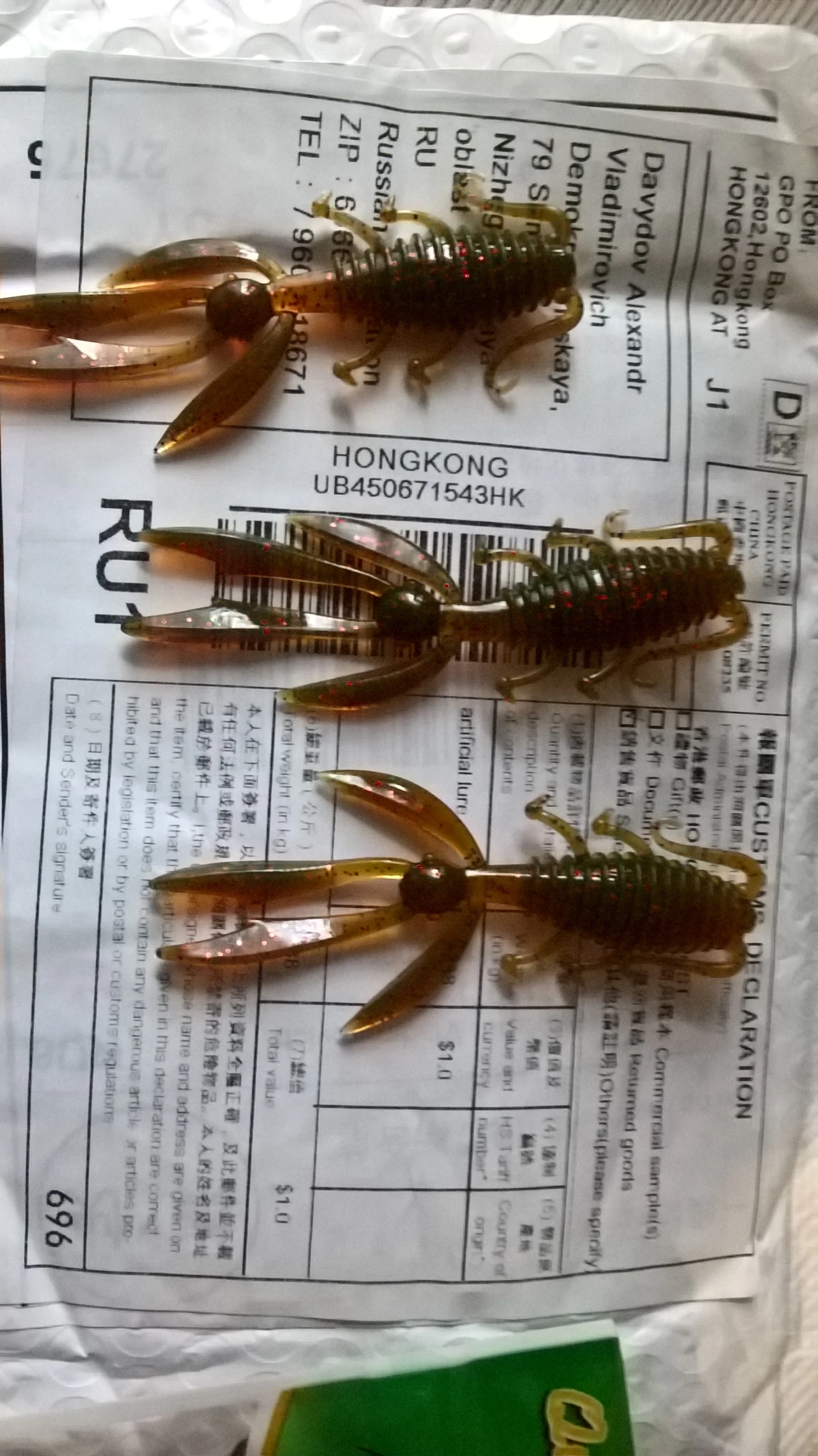 Посылка шла почти 2 месяца!!! А так в целом доволен!!! Приманка как в описании!