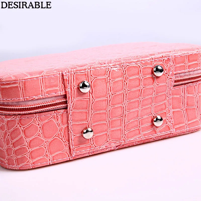 Желательная креативная Женская шкатулка для драгоценностей с каменным узором, кожаная с крышкой, зеркало, ювелирное ожерелье, кольцо, косметический Органайзер, портативная коробка для хранения