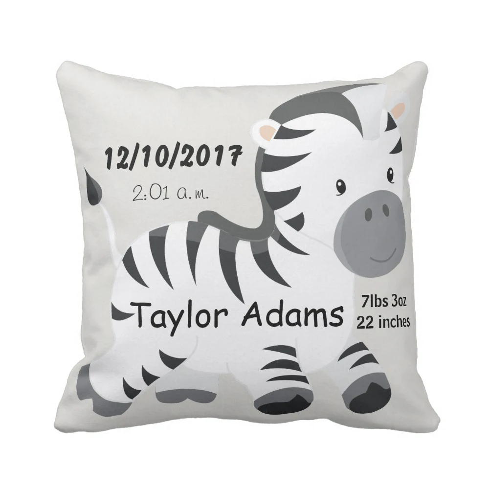 Cushion DesignZebra Birth Stats Baby Nursery Cushion Cover