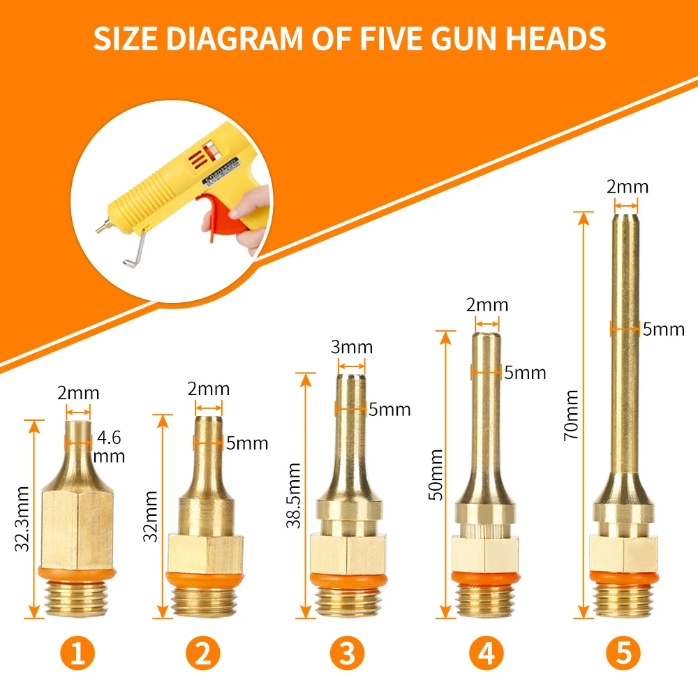 1 Х клеевой пистолет (5 шт. Разной длины Медное сопло Можно выбрать )