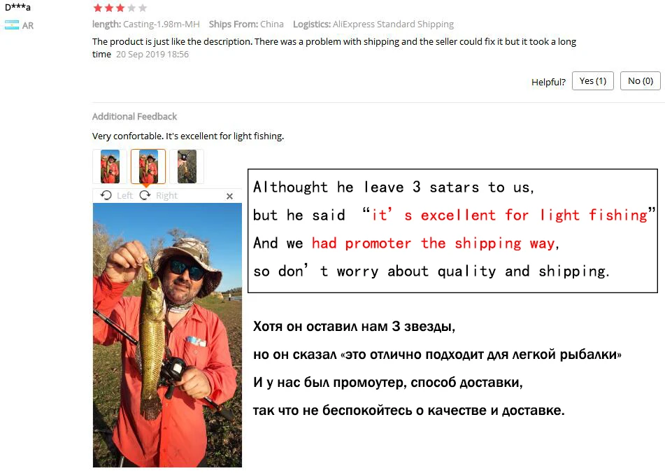 Заказ прибыл очень быстро. Палка тяжёлая. Если брать без скидки, то в России можно купить четырёхчастник лучшего качества, легче на треть и дешевле. Не твин не пенн оба в размере 4000 в катушкодержателе не фиксируются - болтаются. Открыл спор, ответили на почту, почту смотрю редко, ждал разъяснений в теме спора, поэтому время вышло и спор закрыли. Решил, что это моя последняя покупка на али!