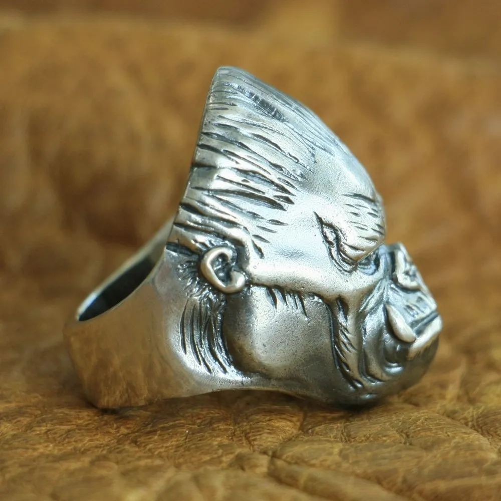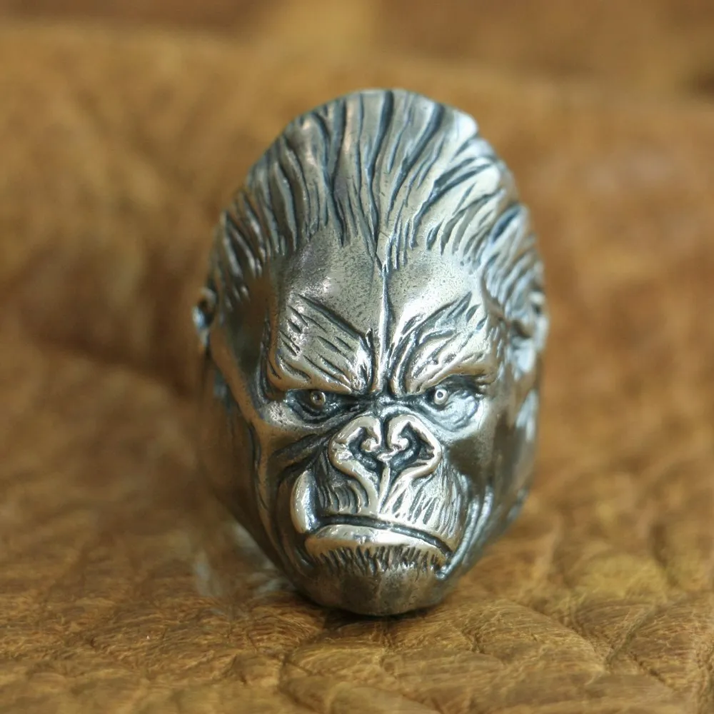 LINSION 925 пробы Серебряное кольцо King Kong мужское байкерское кольцо в стиле панк APE King TA117 американский размер 7 15