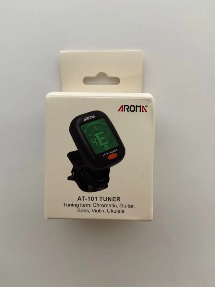 Очень мелкий, шириной с батарейку Cr2032 - на фото выглядит покрупнее. А так работает. Брал за 260р - за эти деньги грех жаловаться. Сравнивал с более дорогим тюнером - очень похоже настраивает, но на паре струн есть отклонения небольшие. Ну а так качество на эти деньги, пластик весьма дешманский, клипса и крепления хлипенькие (по сравнению с более дорогими тюнерами).