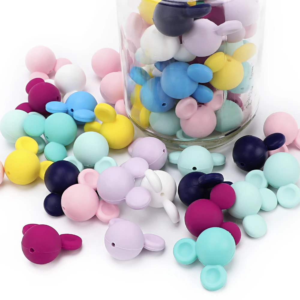Товар 1: большие силиконовые бусины с мышкойРазмер: 32*30*20 ммВес: около 6,26 г/шт.Цвет: 9 цветовУпаковка: 5 шт./компл./$2,99