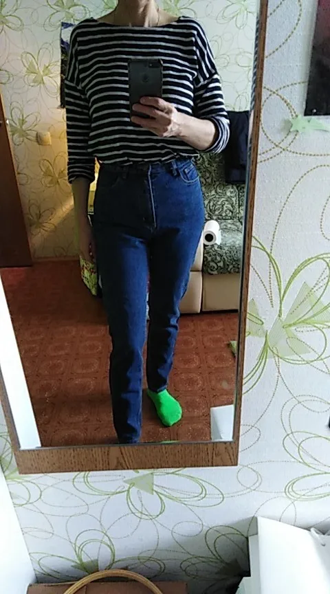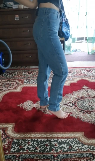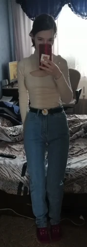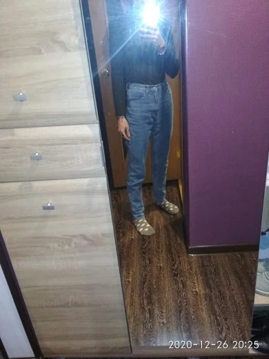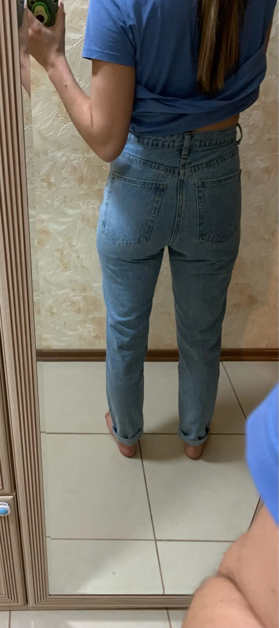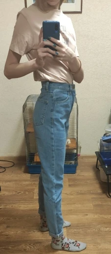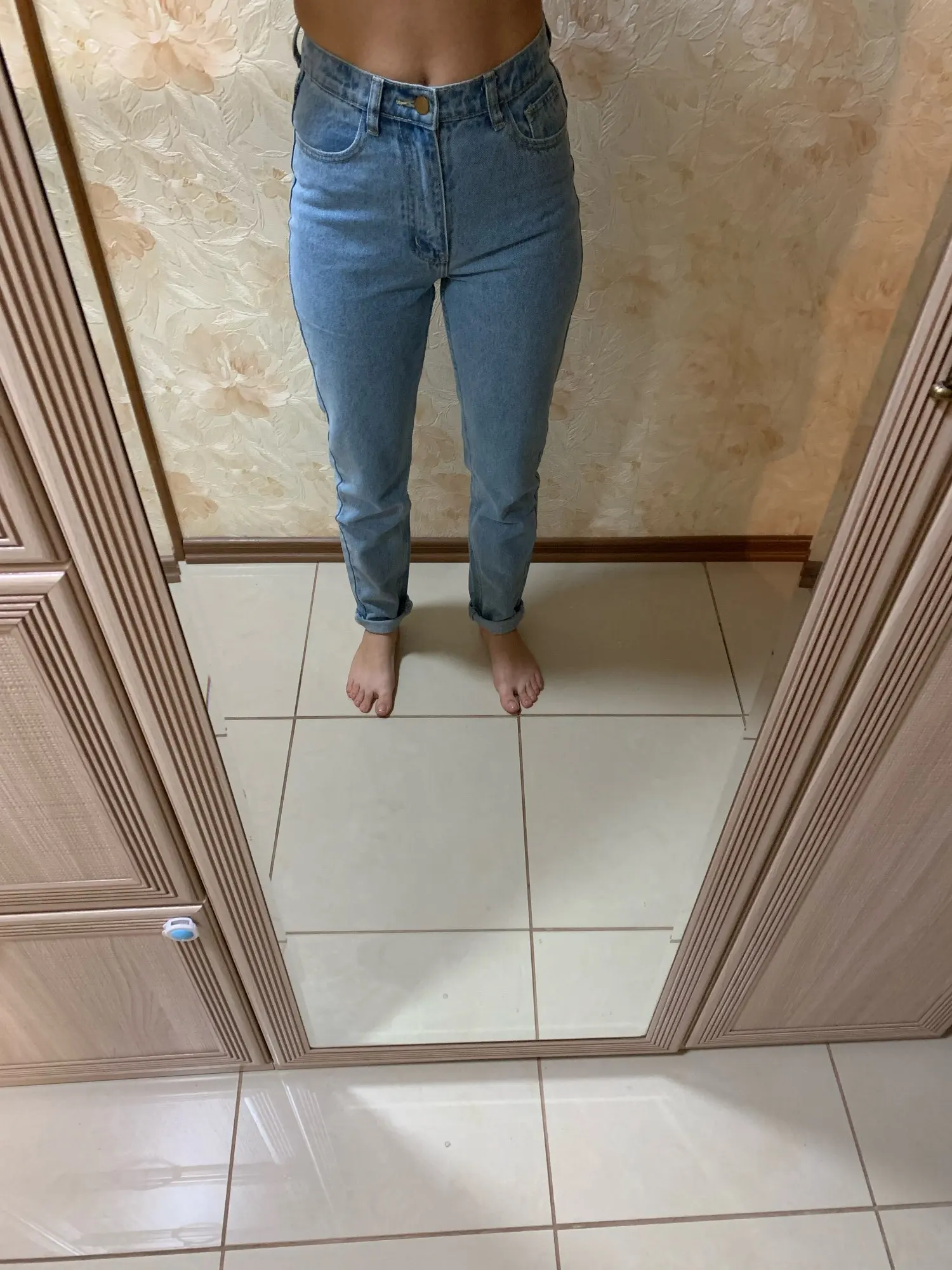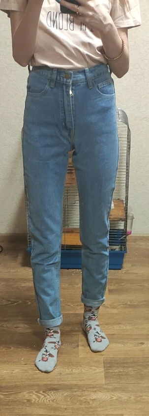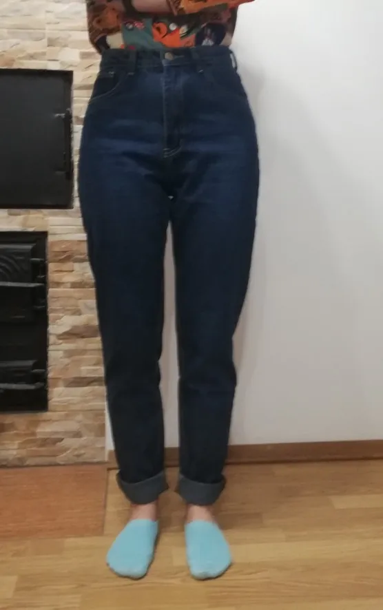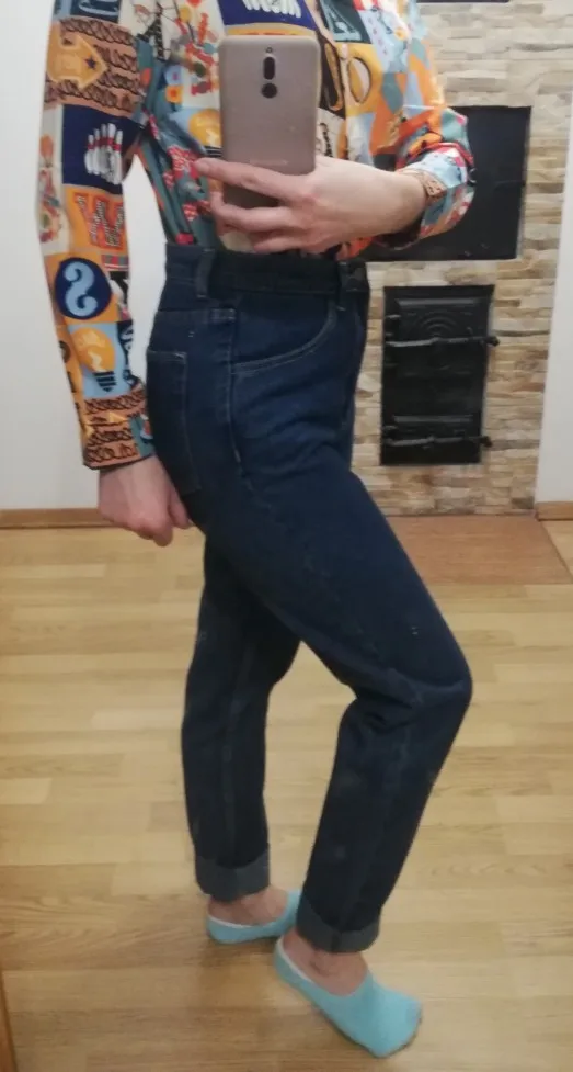 Это лучшие джинсы в моей жизни! Мне очень сложно найти джинсы, которые будут не торчать в талии и при этом будут свободными в бёдрах. Или параметры: талия - 58, бедра - 91, взяла размер 26 - идеально. Сели очень хорошо, удобные. Ткань плотная, джинсы не короткие, очень хорошая застежка. Из недостатков--запах хлора и плохо застегиваетсч и растегивается пуговица, но это мелочи.