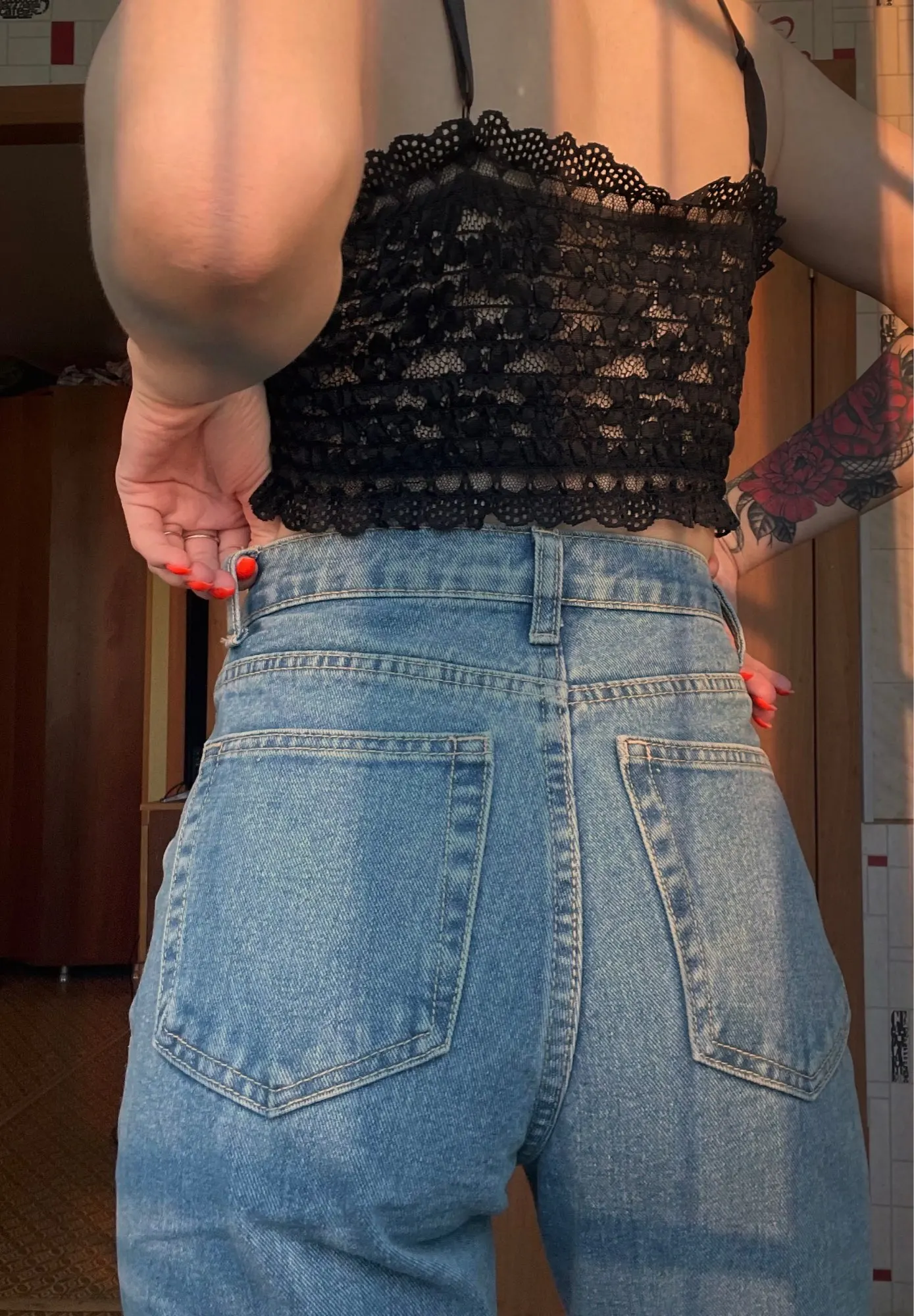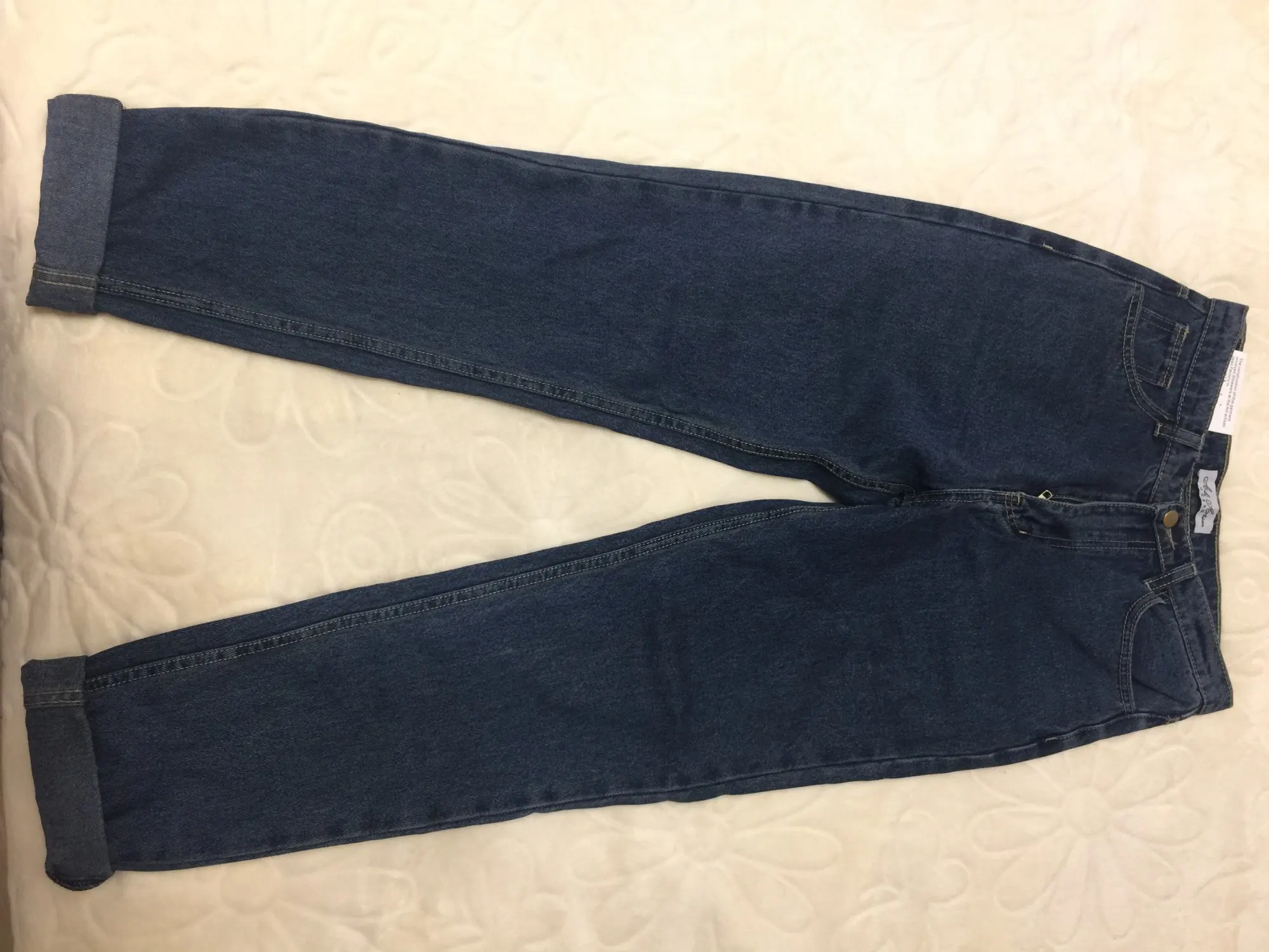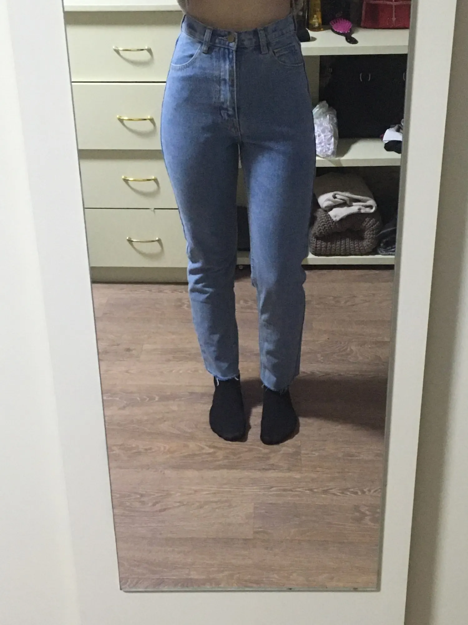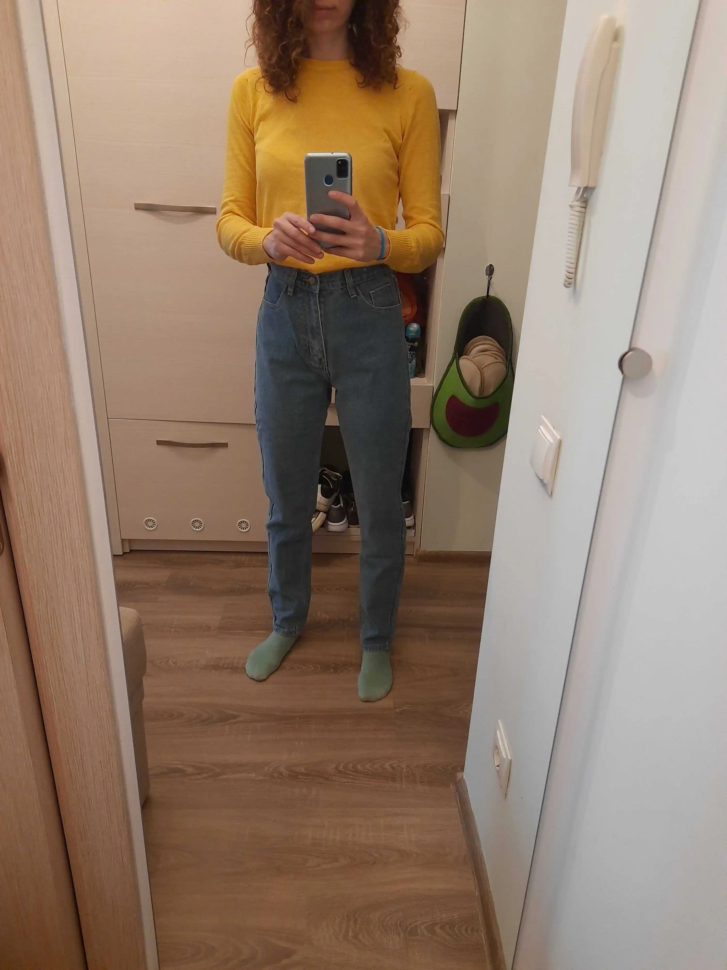 Это лучшие джинсы в моей жизни! Мне очень сложно найти джинсы, которые будут не торчать в талии и при этом будут свободными в бёдрах. Или параметры: талия - 58, бедра - 91, взяла размер 26 - идеально. Сели очень хорошо, удобные. Ткань плотная, джинсы не короткие, очень хорошая застежка. Из недостатков--запах хлора и плохо застегиваетсч и растегивается пуговица, но это мелочи.