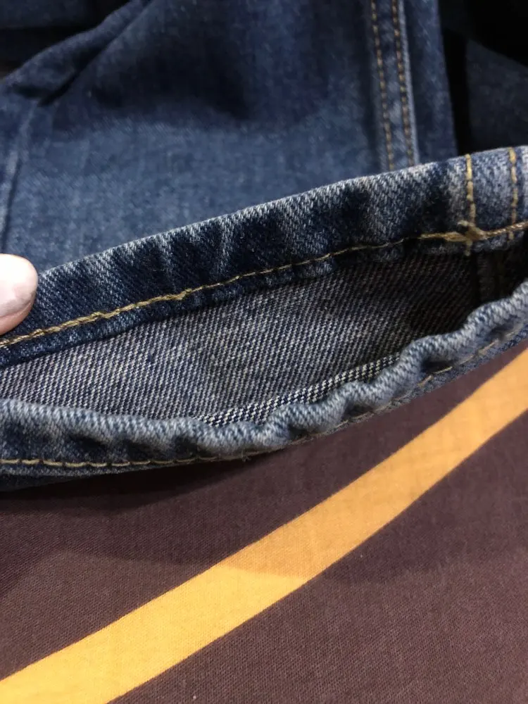 Джинсы пришли бракованные, криво скроены. Дурная привычка срезать бирки и выкидывать. Конечно надо было отправить обратно, но по спору продавец без проблем вернул половину стоимости. Немного подправила боковой шов, теперь впритык в талии, зато сидят нормально.