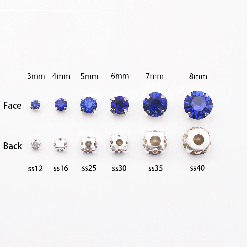 SS12-SS40 Хрустальные стеклянные камни, серебряные стразы в форме когтей, стразы и кристаллы, швейные стразы для одежды, ткань для рукоделия