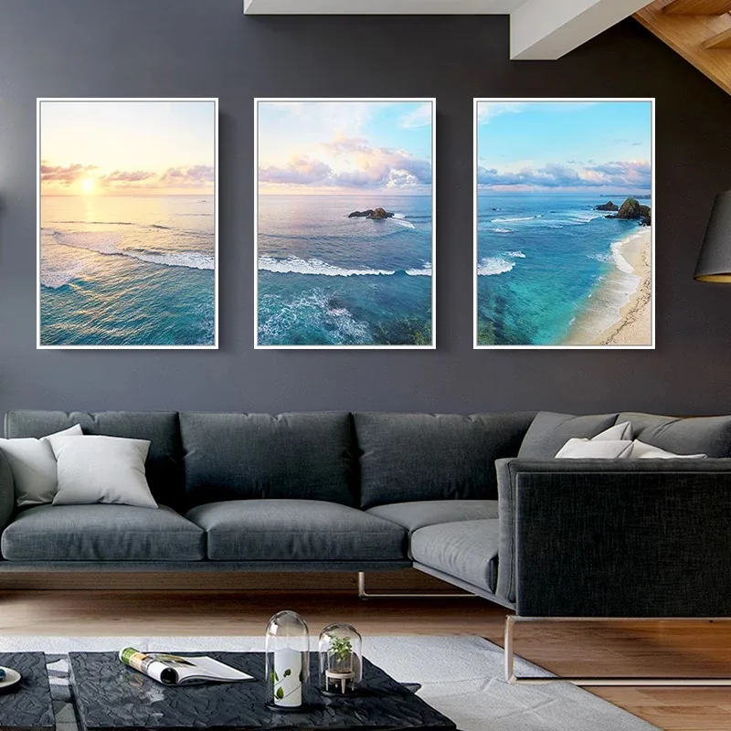 Красивые Морские качели на заказ, HD синие морские волны, художественные принты, плакаты, пейзаж, картина для украшения дома, отеля, Прямая поставка