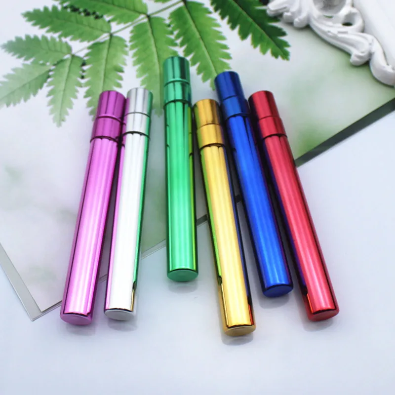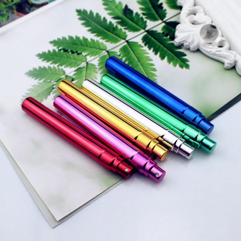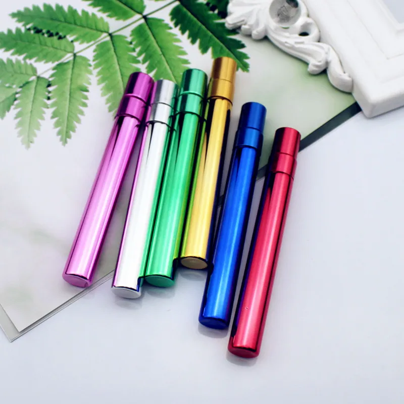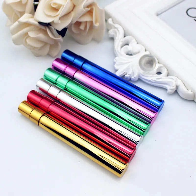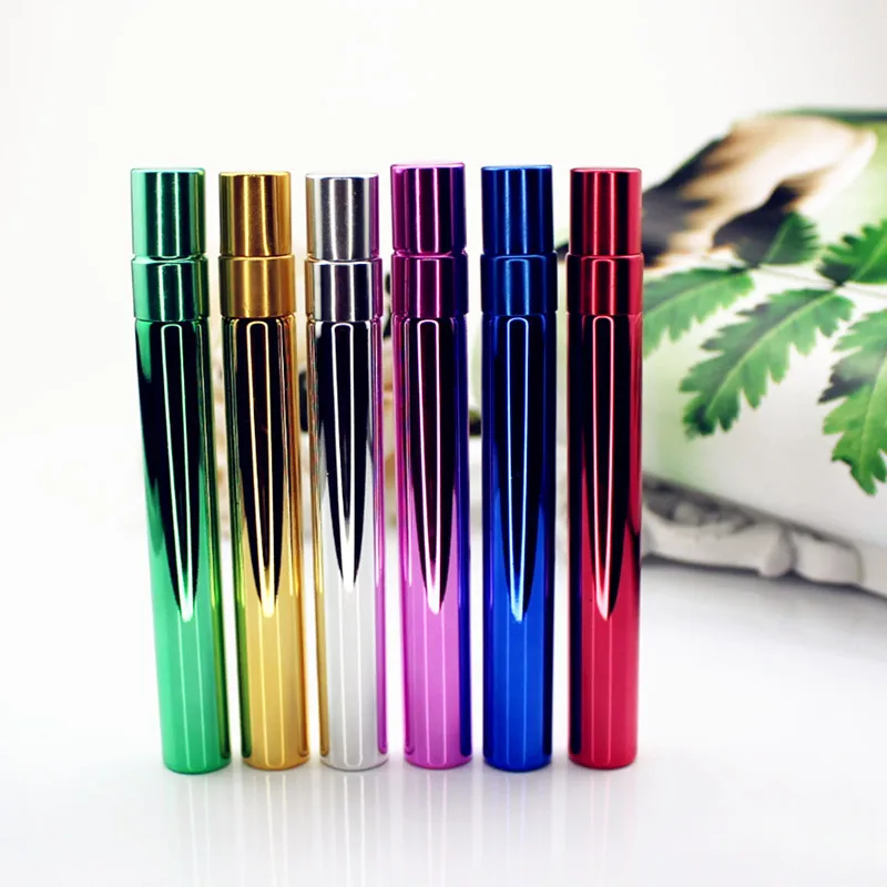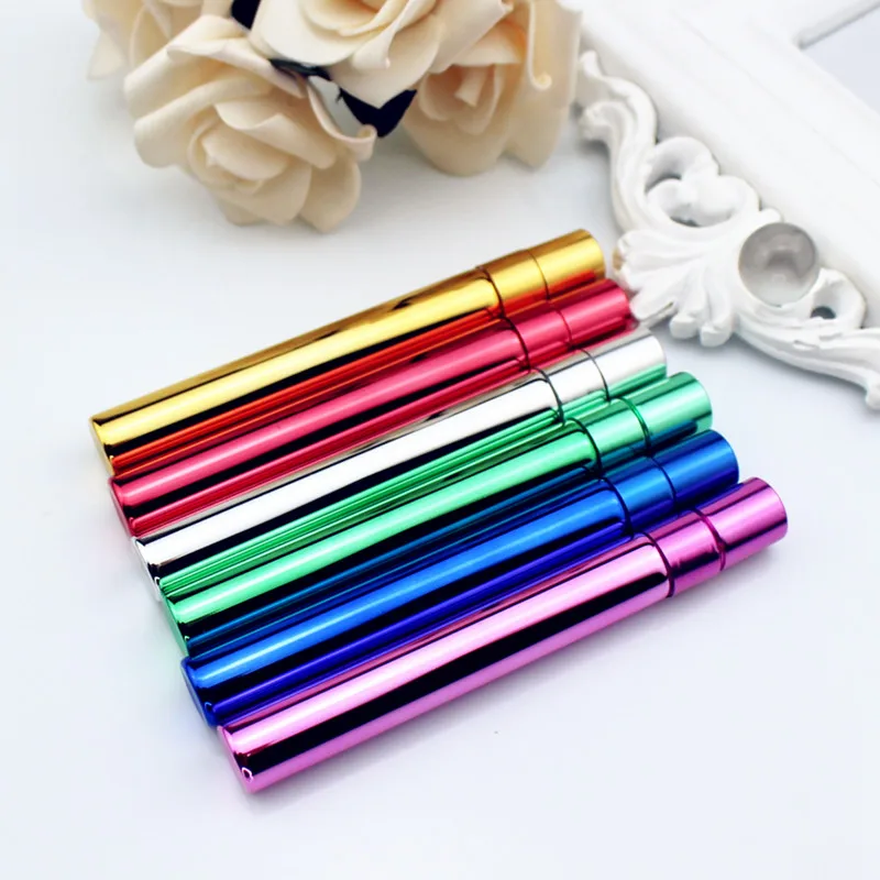 30 шт.лот 10 мл Тонкая Стеклянная парфюмерная бутылка, стеклянные флаконы, тестовая трубка, флакон с насосом, распылитель, парфюмерный распылитель, разные цвета