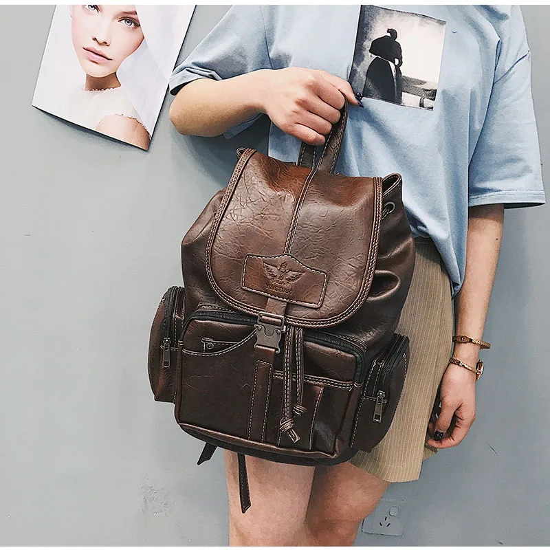 Женский рюкзак, винтажные рюкзаки для девочек-подростков, модные дорожные сумки, 2017, высококачественный рюкзак из искусственной кожи, рюкзак известного бренда, женские рюкзаки, однотонные винтажные школьные сумки для девочек, черные женские рюкзаки из искусственной кожи, брендовый винтажный женский рюкзак из кожи школьные рюкзаки из искусственной кожи для девочек-подростков, повседневные сумки через плечо большой емкости