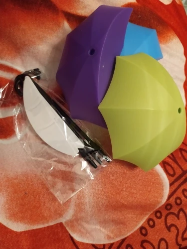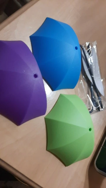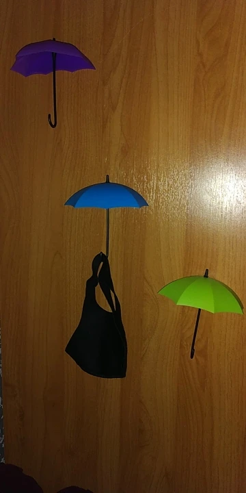 Очень симпатичные, яркие зонтики. А вот двусторонний скотч, на который они крепятся, скорее всего придется заменять, поскольку держит не очень хорошо даже просто зонтик. А уж если на крючок что-то повесить... В общем, стоит подстраховаться чем-то более крепким.