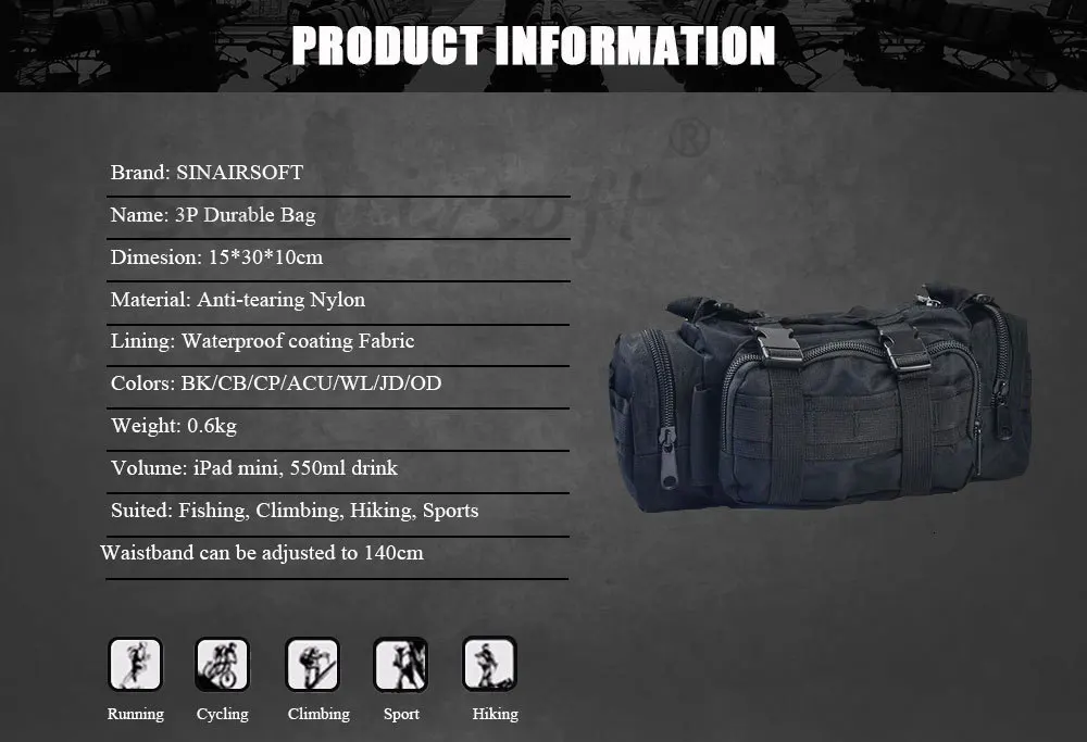 Поясная Сумка SINAIRSOFT, высокое качество военный тактический рюкзак для наружного использования, 3P, нагрудная сумка