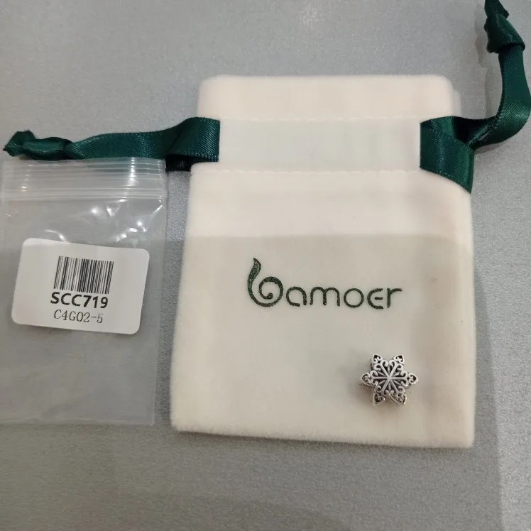 BAMOER, Настоящее серебро 925 пробы, элегантные ажурные бусины в виде снежинки, подходят для женщин, очаровательные браслеты и ожерелье, DIY ювелирные изделия SCC719