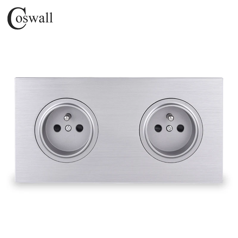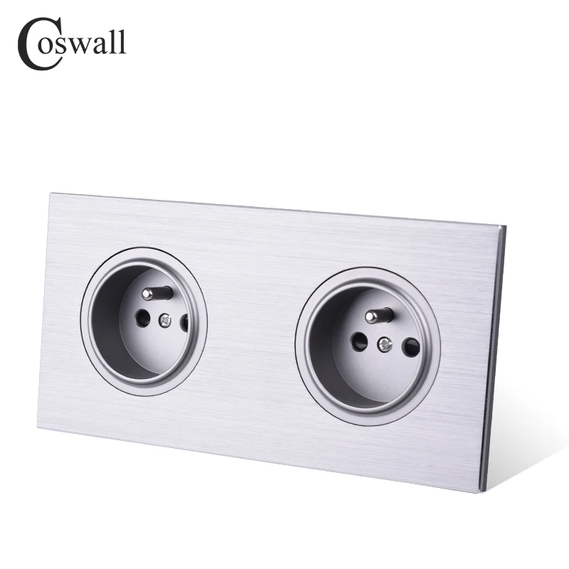 Coswall чернаяСеребристая серая алюминиевая металлическая панель, двойная французская стандартная настенная розетка, заземленная с защитным замком для детей