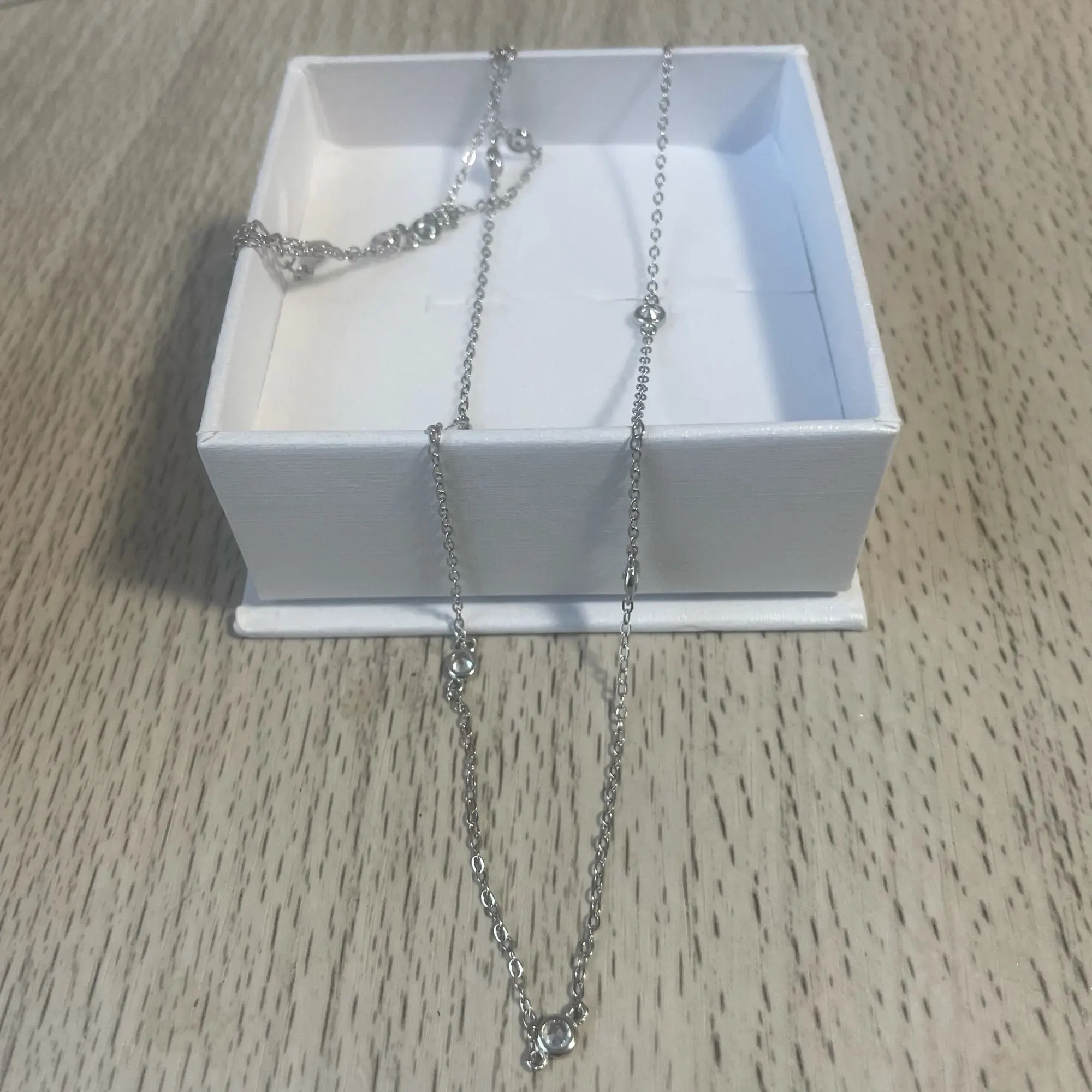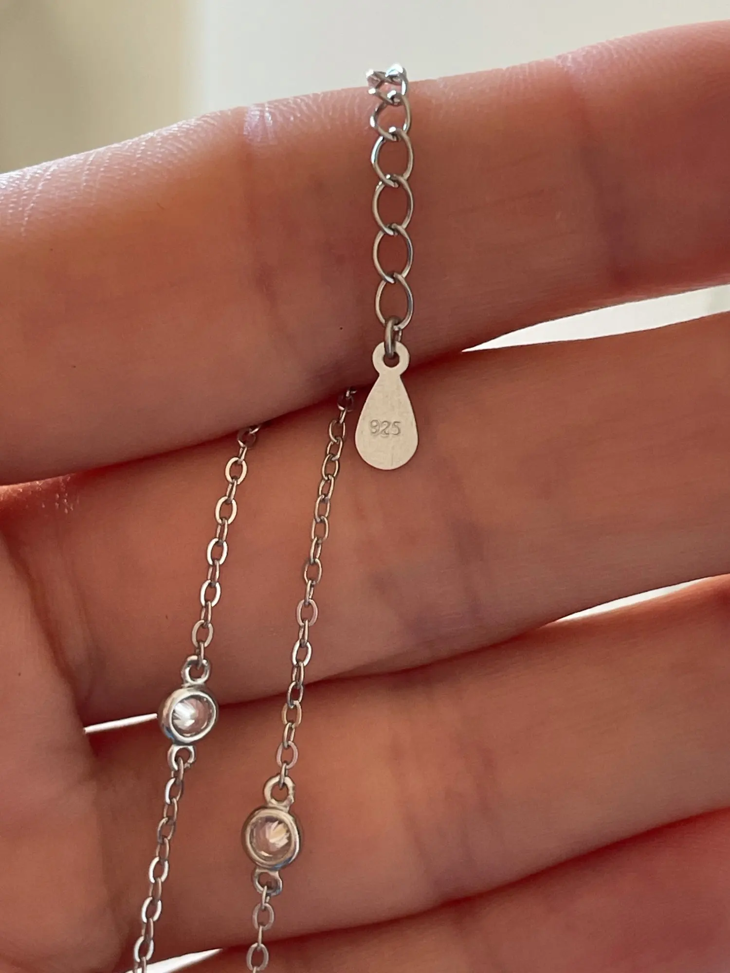 Ожерелье красивое, как видно на фото. Выглядит хорошо, по-видимому, он тертый и имеет марку 925. Цирконы имеют очень мало блеска, но это нормально по цене.