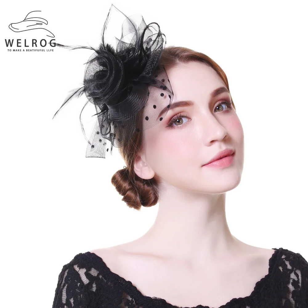 Шляпка женская WELROG, черно-белая, с перьями, шляпа-федора