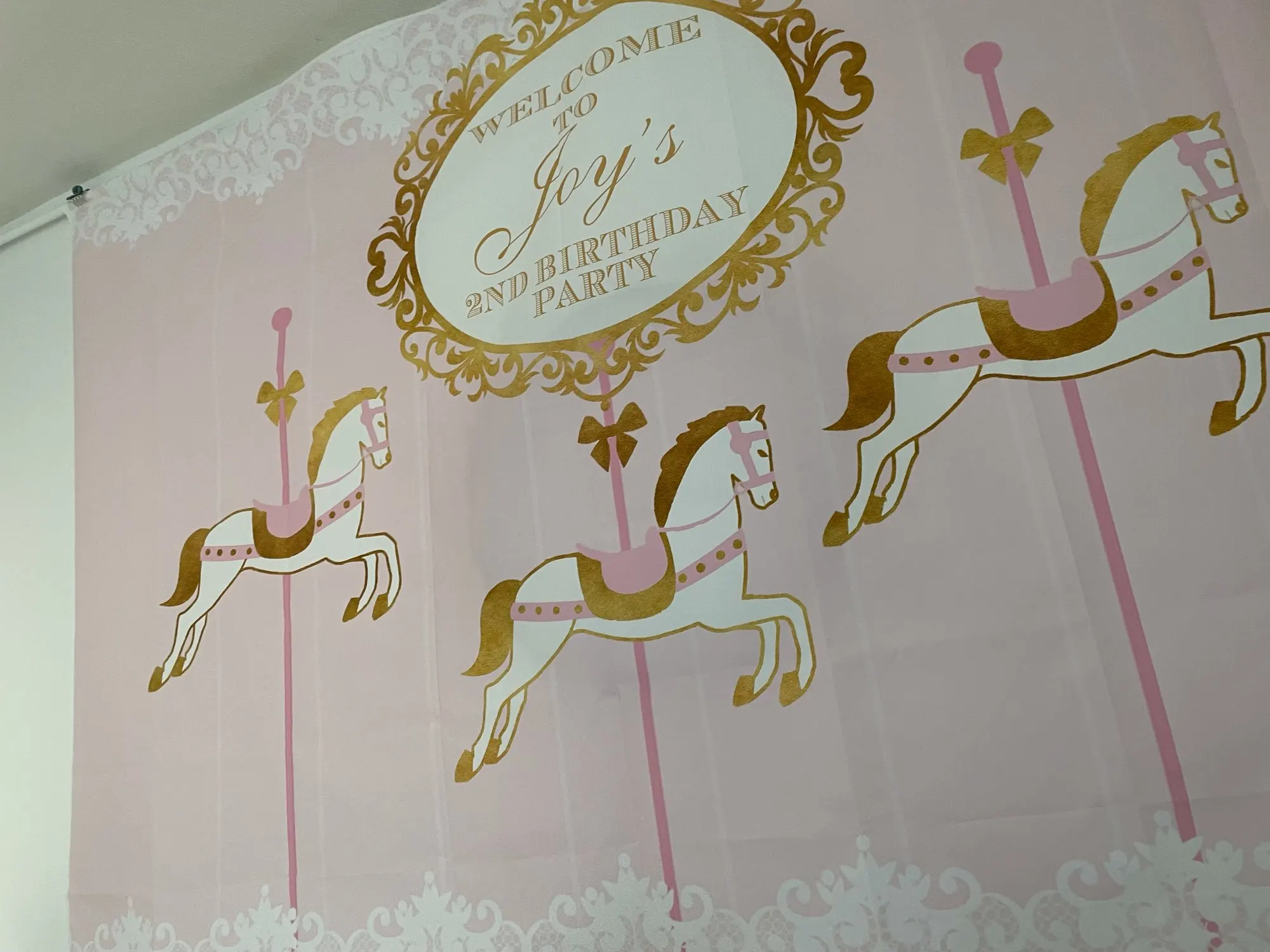 Sensfun розовый тематический фон для дня рождения маленьких девочек золотой белый карусель для новорожденных для фотостудии