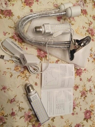 Лампа в Московскую область дошла за 2 недели. К лампе ещё продавец добавил USB розетку. Всё прочное, добротное. Прищепка жёсткая. Хорошо закрепилась за край пластикового подоконника. Стойки прочные, хорошо регулируются и держат лампы.