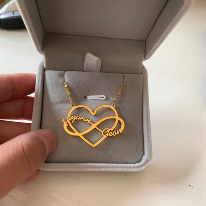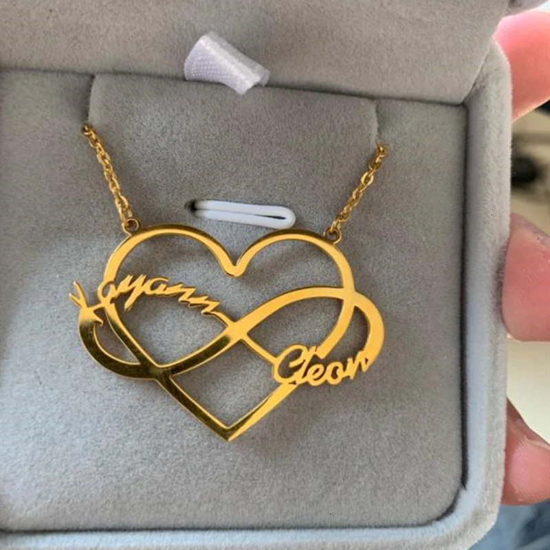 Колье в форме сердца бесконечное Очаровательное ожерелье на заказ парные имена ожерелье женское мужское ювелирное изделие персонализированный Свадебный Подарок Золотое колье-цепочка