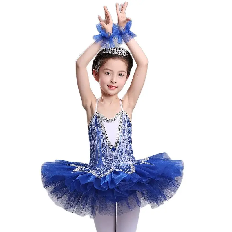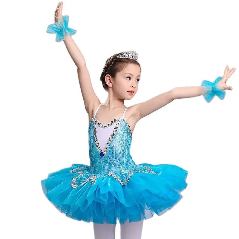 Небесно-голубая профессиональная балетная пачка для девочек, детская балетная пачка с блестками, детский танцевальный костюм для девочек