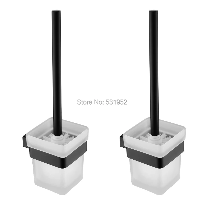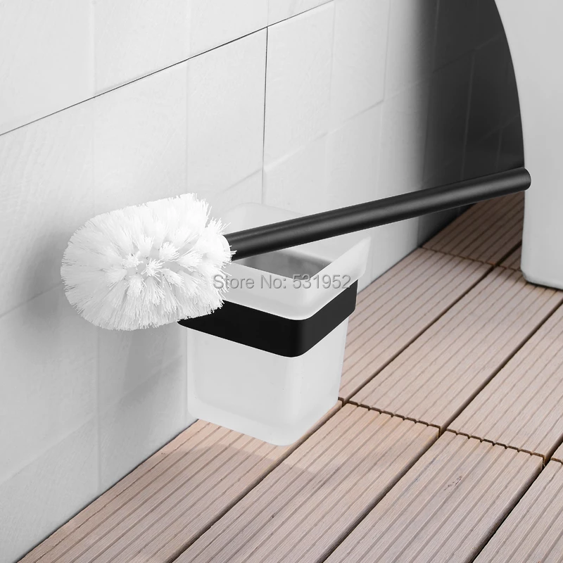 Настенный держатель для туалетной щетки с матовой стеклянной чашкой, матовый черный держатель для туалетной щетки для ванной комнаты, держатель для миски