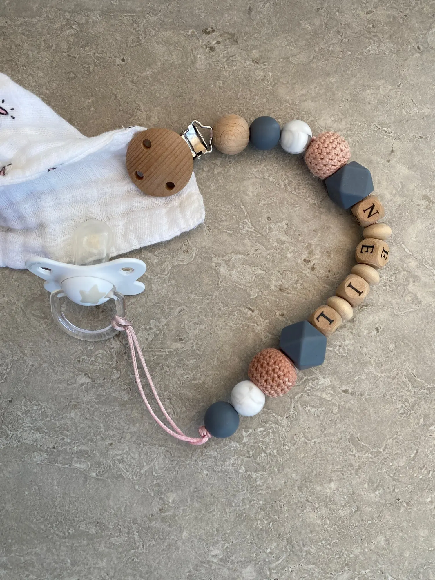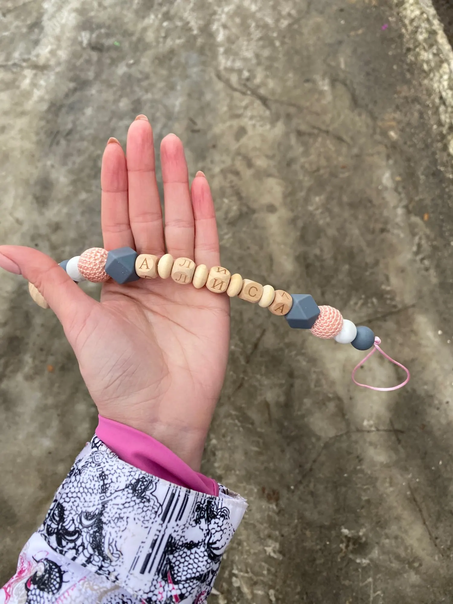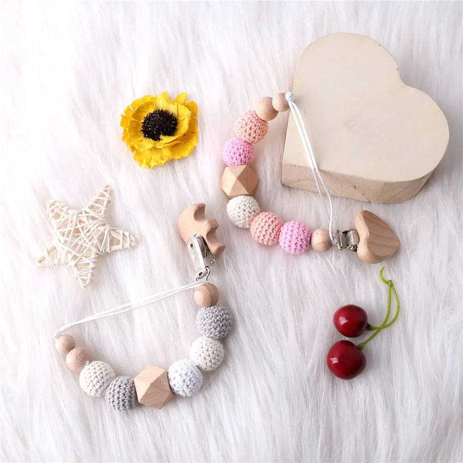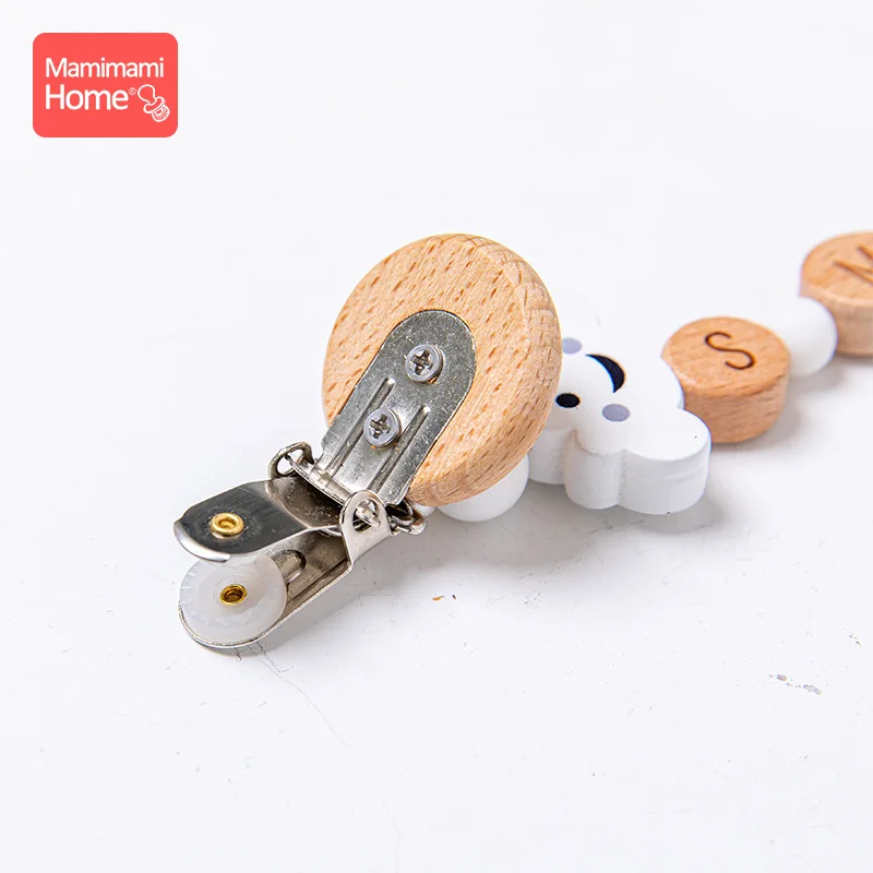 Цепочка с зажимом для соски-пустышки, с именем ребенка, деревянный грызунок, держатель для соски, бусины из силикона, Товары для детей, 1 шт.