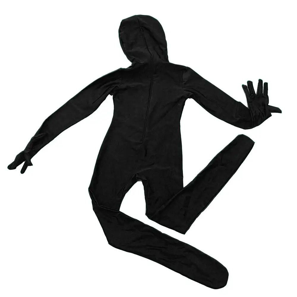 Детский комбинезон LZCMsoft на все тело с открытым лицом, нейлоновые Детские костюмы Zentai из спандекса, с длинным рукавом, с капюшоном, черная кожа, комбинезоны Zentai