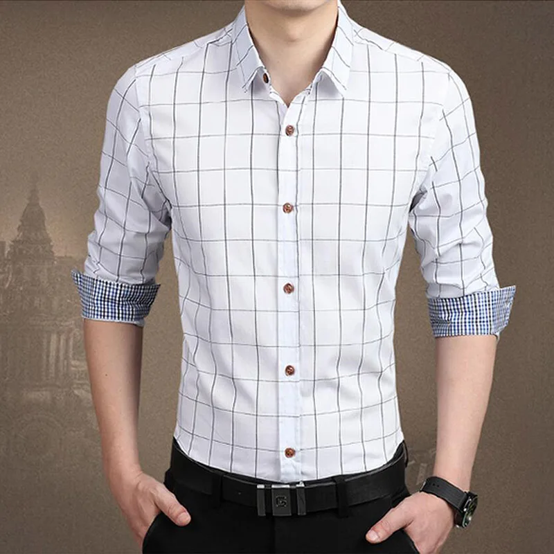 Мужские рубашки в клетку, новые мужские классические рубашки с длинным рукавом, приталенные, повседневные, черные, белые, мужские, костюмы из искусственного хлопка с длинными рукавами